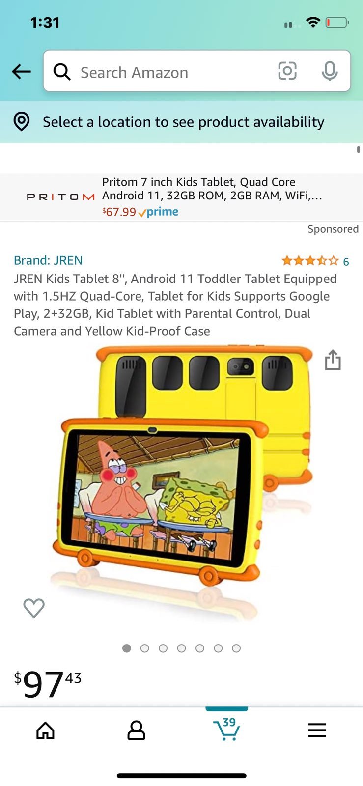 Brand new! On sale! Kids Tablet 8'', Android 11 Toddler Tablet Equipped with 1.5HZ Quad-Core, Tablet for Kids Supports Google Play, 2+32GB, Kid Tablet with Parental Control, Dual Camera and Yellow Kid-Proof Case