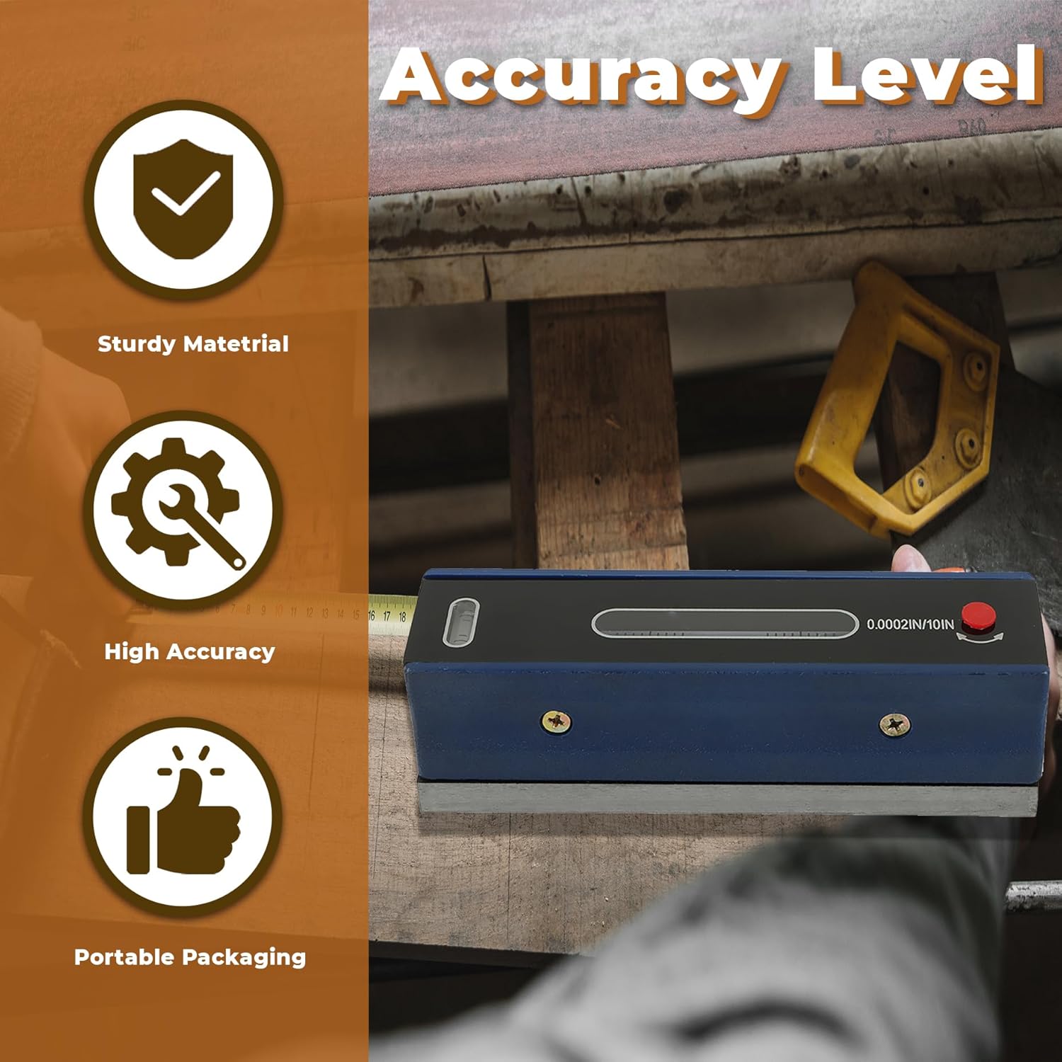 6 Inch Master Accurate Level for Machinist Tool Accuracy 0.02mm/mSpecification:Material: Carbon SteelAccuracy: 0.02mm/mLength: 150mmFeatures:1. For setting and checking the level of machinery and other high accuracy levelling applications2. Made of premium carbon steel, long service life3. With wooden case, easy to store and carry4. High accuracy: 0.02mm/mNote:When in use, the heat source and air flow should be insulated and the temperature should be kept as constant as possible.When the level gauge is placed on the measured surface, it must wait for the bubbles to be stationary before it can be read.When reading, it should be observed vertically to avoid parallax.Package Includes:1 x 150mm Accuracy Master Level