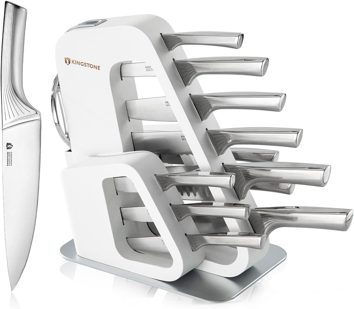 | Included Components | Includes 8" chef's knife, 8" serrated bread knife, 7" Santoku knife, 6" boning knife, 5" utility knife, 5" steak knife, 3.5" paring knife,, built-in sharpener, multifunctional kitchen shears, rubber wood knife block |