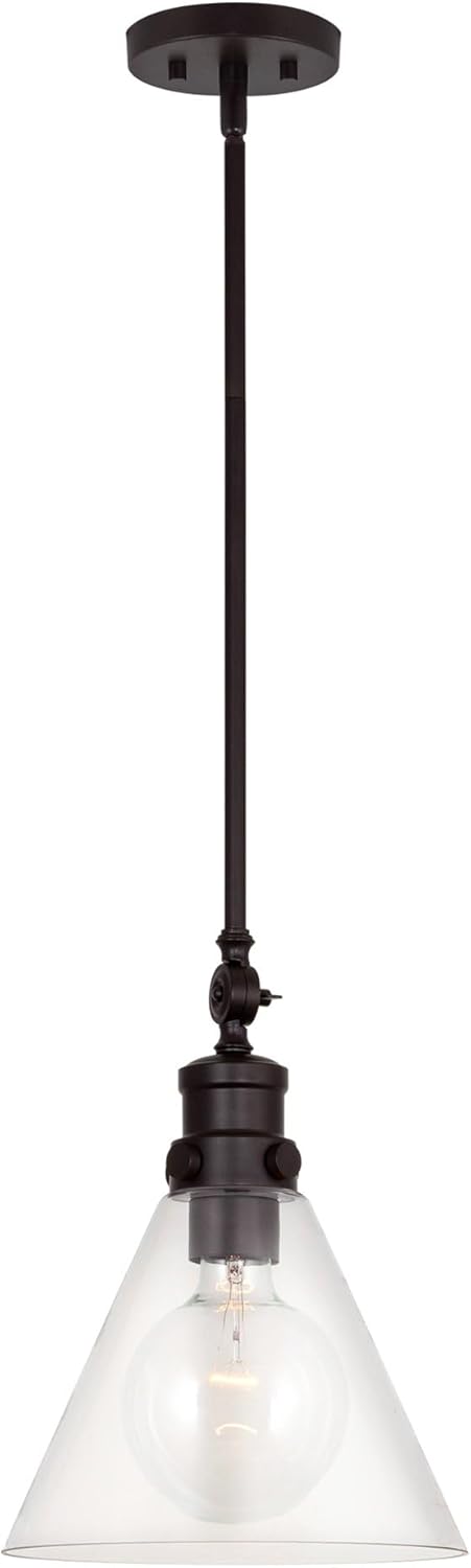 Product Overview Kira Home's Emma 14" 1-light pendant adds the perfect touch to any room in your home, business or office, boasting a classic oil rubbed bronze finish, clear conic glass shade and movable shade that can be adjusted to point in different directions. Though contemporary and antique in style, the clean and classic design works well in a variety of environments such as contemporary rustic, industrial, farmhouse / barnhouse, schoolhouse and retro. To further evoke a mood of nostalgia, capitalize on the beautiful clear glass shade by pairing it with Edison vintage style bulb, allowing the warm glow and detailed filaments to shine through. A telltale sign of great taste, hang this unique fixture in a variety of locations. As a single statement piece, Emma works well above cafe and bistro tables, creating cozy and intimate mood lighting in a restaurant, bar or home. Combining style and function, the Emma pendant also works well above the kitchen sink or table or above a laundry room sink. In a set of 2-3+, mount above the kitchen counter or island creating a linear and cohesive effect with ample lighting. Enhance your home or hospitality settings today with this stunning pendant light! Unlike many of our competitors, this light is ETL approved for your safety. At Kira Home, we pride ourselves on exceptional customer service! That is why we provide a 1-year warranty when purchased from an authorized seller. We confidently stand behind our quality products but understand issues may occur once in a while, such as damage in transit or defects. Rest assured, we will resolve these issues. Please contact us via Amazon message or email so we can assist you on any necessary replacements or refunds. Details: Part Number: RV-CP4227-1-OB UPC: 810018524227 Style: Farmhouse Color: Oil Rubbed Bronze Shade: Clear Material: Metal, Glass Number of Lights: 1 Type of Lights: Medium Wattage: 60 Voltage: 120 Carton Dimension: 12.6"(W) x 12.6"(D) x 12.6"(H) Shipping Weight: 5 Safety Rating: ETL Listed Location Rating: Dry Lighting Direction: Downlight Lighting Source Type: Incandescent, LED, CFL Mounting Style: Ceiling Feature 1: Dimmer and Sloped Ceiling Compatible Finish Type: Painted Recommended Room Type: Indoor, Home, Kitchen Above Island, Dining Room, Living Room, Office, Foyer, Hall, Entry, Stairs Prop. 65: WARNING: This product can expose you to chemical(s) including lead, which is known to the State of California to cause cancer, birth defects, and/or other reproductive harms. For more information, go to www.P65Warnings.ca.gov. Features: MODERN STYLE: Simple, beautiful pendant light with an oil-rubbed bronze finish features clear conic glass shade and an adjustable head, allowing light to be pointed in multiple directions. Perfectly fits multiple styles such as rustic & industrial EASY TO INSTALL: Hang this versatile fixture in many locations such as above your kitchen island in sets of 2-3 or over a sink, for commercial projects including in lobbies, reception areas, restaurants and bars. Dimmer & sloped ceiling compatible ETL LISTED FOR YOUR SAFETY: ETL listed for dry locations. Uses (1) LED, CFL or up to 60W traditional incandescent medium base bulb. Complete your industrial look with an Edison style bulb. Bulb sold separately DIMENSIONS: Pendant Light: 14" (H) x 10" (D), Canopy: 4.75" (D) x 0.75" (H), Shade: 8" (H) x 10" (D). Includes (3) 12" and (1) 6" downrods for desired hanging height. Minimum/Maximum: 23" - 59" UNMATCHED QUALITY AND CUSTOMER CARE: Designed and supported in California, we are a US based company with real local support. If you ever encounter any issues, feel free to reach out to us, as we provide a 1-year warranty. Shop with confidence!