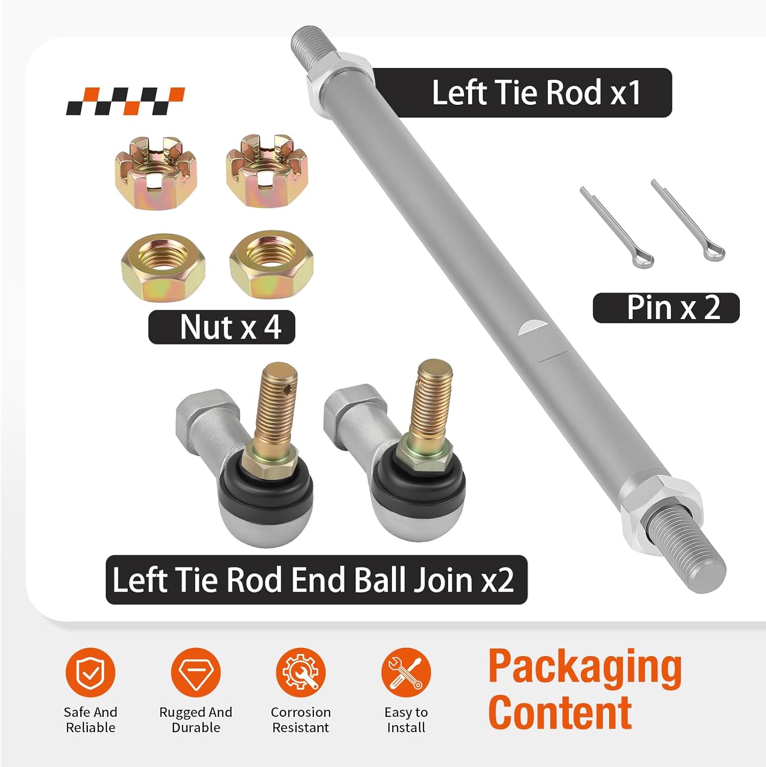 | Included Components | Left Tie Rod End Ball Join x2, Left Tie Rod x1, Nut x 4, Pin x 2 |