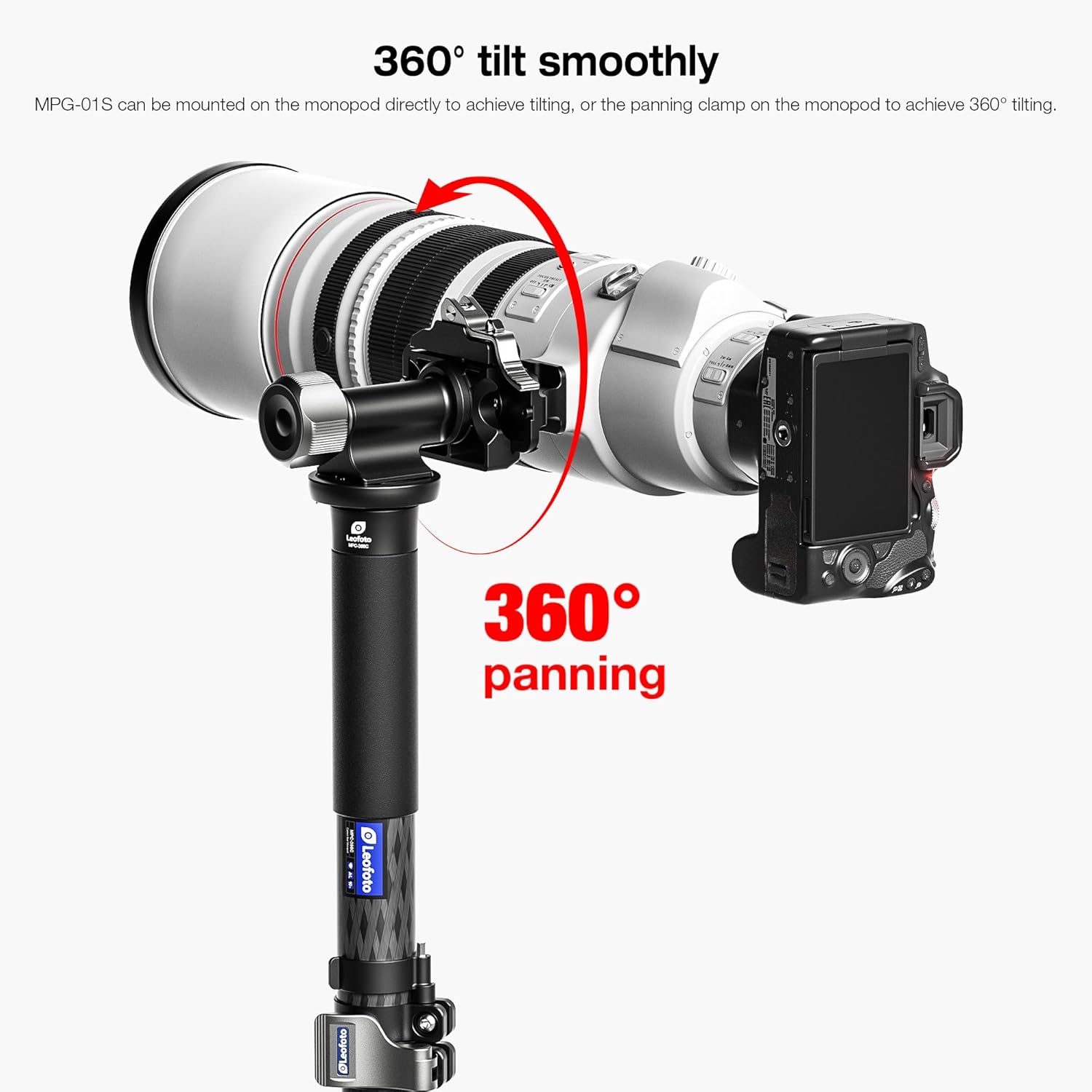 360° Ultra-Smooth Tilt & New Designed Locking System: Engineered with a groundbreaking triple-dome locking system and brass washer, the MPG-01L delivers unmatched stability for 360° tilt and pan movements. The newly upgraded safety locking system holds the quick release plate tightly in place and prevents the unit from fallingDual Mounting Versatility for Creative Freedom: Mount directly onto your monopod for instant tilt control, or pair with a panning clamp (sold separately) to unlock full 360° rotations. This dual-mode flexibility adapts to any shooting scenario, from birdwatching with telephoto lenses to dynamic videography on the moveFeatherlight Build: Supporting up to 10kg of gear yet weighing just 380g, this anodized aluminum alloy head redefines portability. Its compact design (100x75x120mm) slips effortlessly into adventure-ready kitsErgonomic Grip for Rapid Adjustments: A supersized knurled knob delivers precise torque control, letting you tighten or loosen the mechanism mid-action with glove-friendly ease. The Arca-compatible clamp (plate not included) ensures swift gear swaps, while the reinforced side lock guarantees rock-solid securityUniversal Compatibility Across Systems: Seamlessly integrate with tripods, monopods, sliders, or stabilizers via its dual-mount design: a bottom 3/8" thread for universal attachment and an Arca-type base for quick-clamp systems