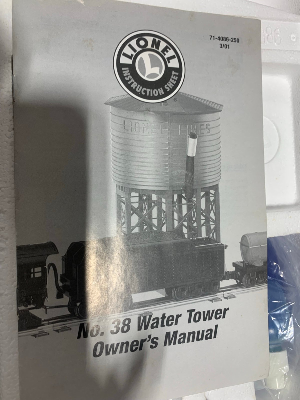 Lionel modern era no. 6-14086 #38 water tower. Detailed with real water inside and moving spout. Nice addition to any layout I’m half the price of eBay on this. Please check pictures closely we are selling this in as in condition. Thanks J&D trains