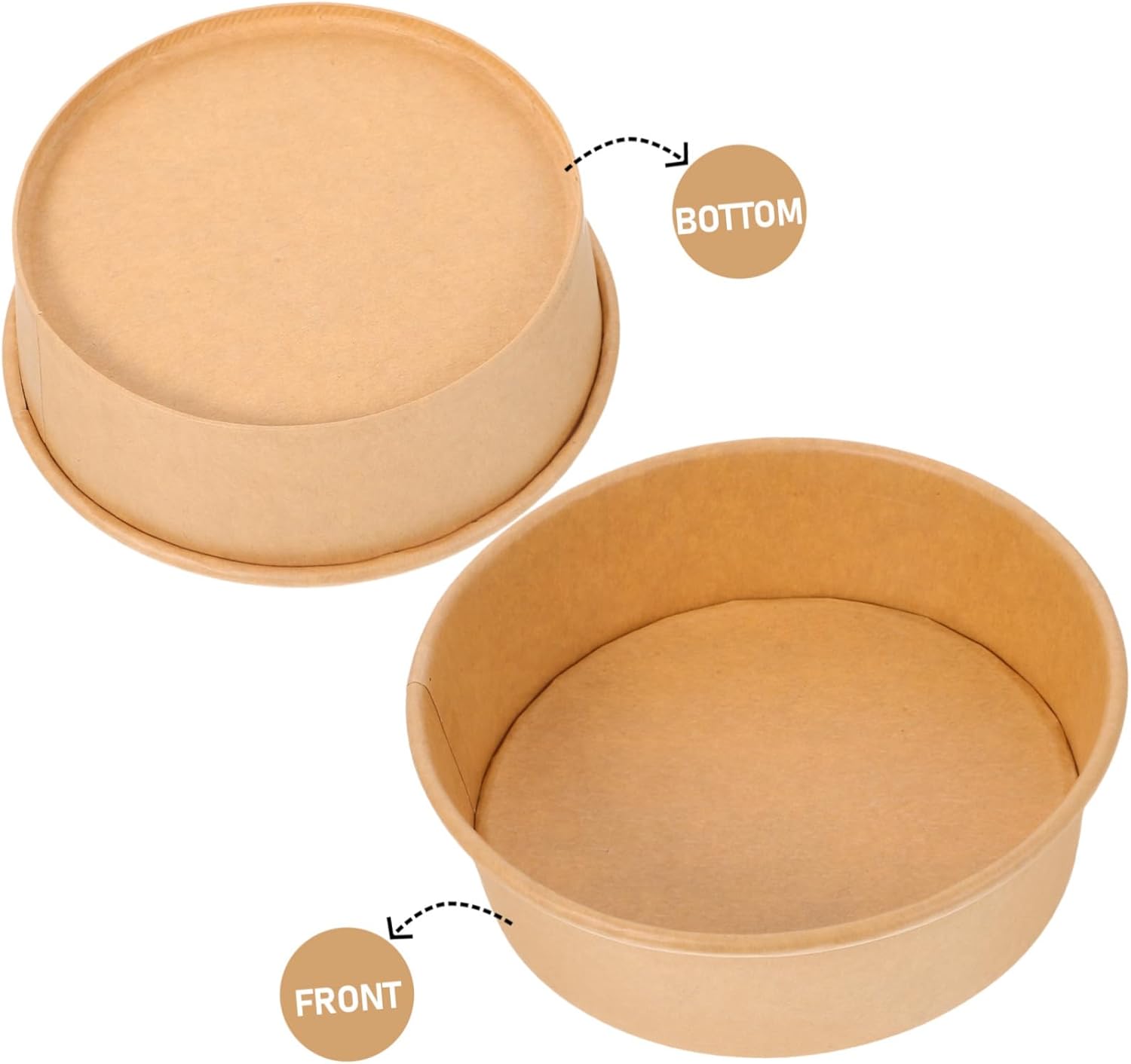 Package Include 100 x Paper bowls Features -Material:Paper food containers -Color:Brown food boxes Volume: 500ml food trays -Multipurpose container: suitable for a variety of foods, including hot soups, salads, and more, making it a versatile addition to your kitchen snack trays -Size:15.00X15.00X4.70cm/5.89X5.89X1.85in bbq plates -Safe for food: constructed from foodgrade materials, this chinese food box is safe for storing and consuming food, providing you with a great experience food trays for party -Leakproof construction: the kraft paper material allows that the paper take out container is leakproof, preventing any spills or messes kraft takeout containers -Easy to carry: our kraft paper round takeout box with lid is designed for easy portability, allowing you to enjoy your meals wherever you are chinese containers for food - : made of sturdy paper, this paper soup container is and maintains its shape even after prolonged use sandwiches paper boxesGoods Descriptionhot food lunch container Its leak-proof design allows that your food stays contained, preventing messy spills during transport.bbq plates The secure lid of this kraft paper container helps to maintain the freshness and flavor of your food, making it ideal for meal services.paper boxes Trust this container to keep your meals intact and delicious from kitchen to table