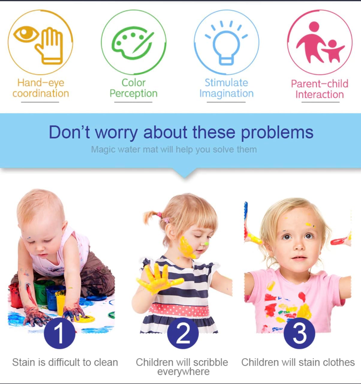 Unleash your child's creativity with the Coolplay Magic Water Drawing Mat. This innovative doodle mat, featuring magic pens and vibrant colors, provides endless artistic fun. It's mess-free, reusable, and promotes learning through hand-eye coordination and creativity. Watch as your child's imagination comes to life on this captivating educational toy.