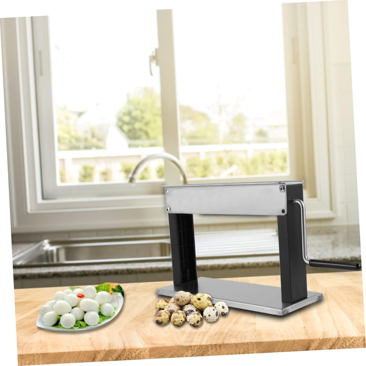 Package Include 1 x peeler 2 x tubes 1 x clip Features -Material: Stainless steel, plastic Hand egg peeler -Size: 21.00X15.50X5.50cm/8.25X6.09X2.16in Egg Peeler Machine -Color: Silver, Random Color Accessories Portable Bird Egg Peeling Machine - Once they are cooked, take them out and soak them in cold water to cool down for 5-10 minutes Quail Egg Peeler. - Made with , to use eggshell peeling machine. - First soak quail eggs with cold water, then put them into boiled water then stirring them during cooking Household Bird Egg Peeling Machine. - appliance for home, restaurant, carnival, market, and etc Household Quail Egg Peeling Machine. - Manual handle, easy to roll and peel the eggs Sheller for Boiled Quail Egg.Goods InformationEgg Huller Manual handle allows you to crack quail egg without using any electricity.Manual Quail Egg Peeler Made of , this manual quail egg peeler is portable to carry everywhere