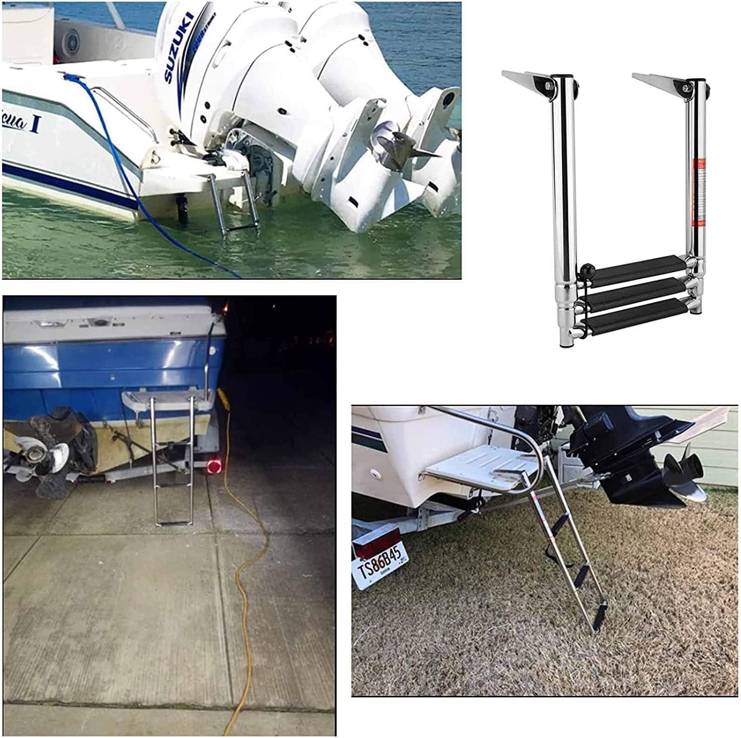 This boat ladder is designed to be mounted below your swim grid or other platform. When stowed, it folds flat beneath your swim platform. This leaves your swim grid completely unobstructed, yet the ladder can easily fold out at your convenience. Each ladder includes a short circle rope that can be used to fix the mounting bracket to ensure the steps remain securely in place when not in use.SpecificationMaterial: Stainless steelExpanded Length: 87.5 cm/34.4 inchLadder width: 24 cm/9.4 inchWeight: 4 kg/8.8 lbsLoad: 150kg/330lbsProduct benefits:Made of 316 stainless steel,durable,anti-rust.Easily removable and install. Compact,lightweight and portable.The design of this platform ladder makes it possible to be used as on a pontoon boat. Some of customers have also used this as a low profile dock ladder.Package contents:1 x Boat LadderNote:Because of the manual measurement 1-3cm size error,take physical size must prevail.There is a slight difference between the image and the actual element caused by the brightness.Incorrect maintenance mode will seriously affect the appearance of the product and the useful life.If you have any further questions about our Ladder,please contact us first. We are happy to help you. I hope you have a wonderful life.
