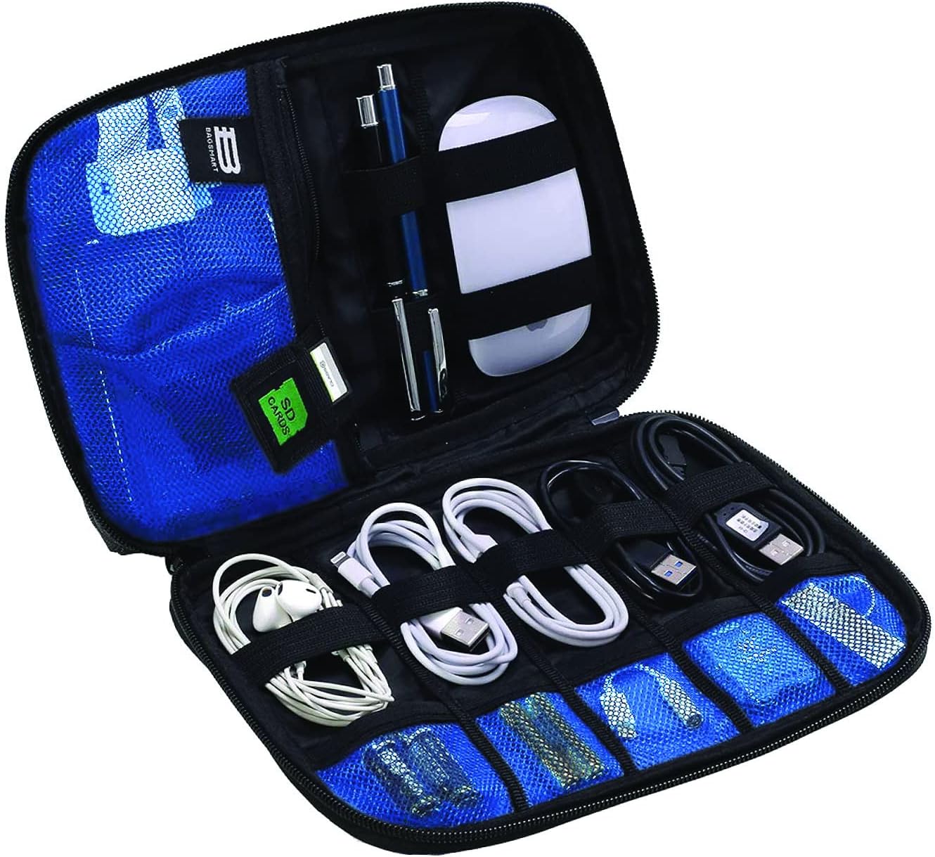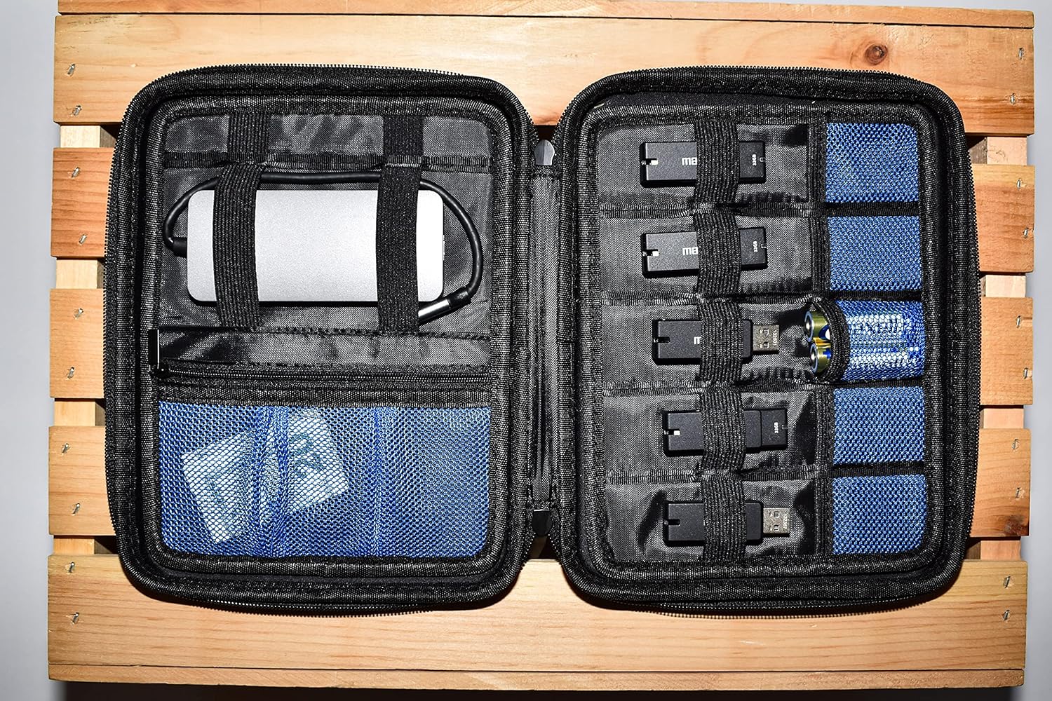 The Maxell mobile storage case is ideal for medium and small electronics and accessories. It protects and organizes everything from earbuds, cables, USB's, SD cards, chargers and much more. Keep your electronics and accessories safe and tangle free with storage options to meet every need, including a see thru-zipper compartment, storage pockets, and premium sewn in elastic loops. The hard shell exterior is made of durable nylon and also includes a padded interior for an extra layer of protection. A full zipper closure makes this case an ideal choice for storage and portability, keeping all of your small electronics and accessories organized in one place.