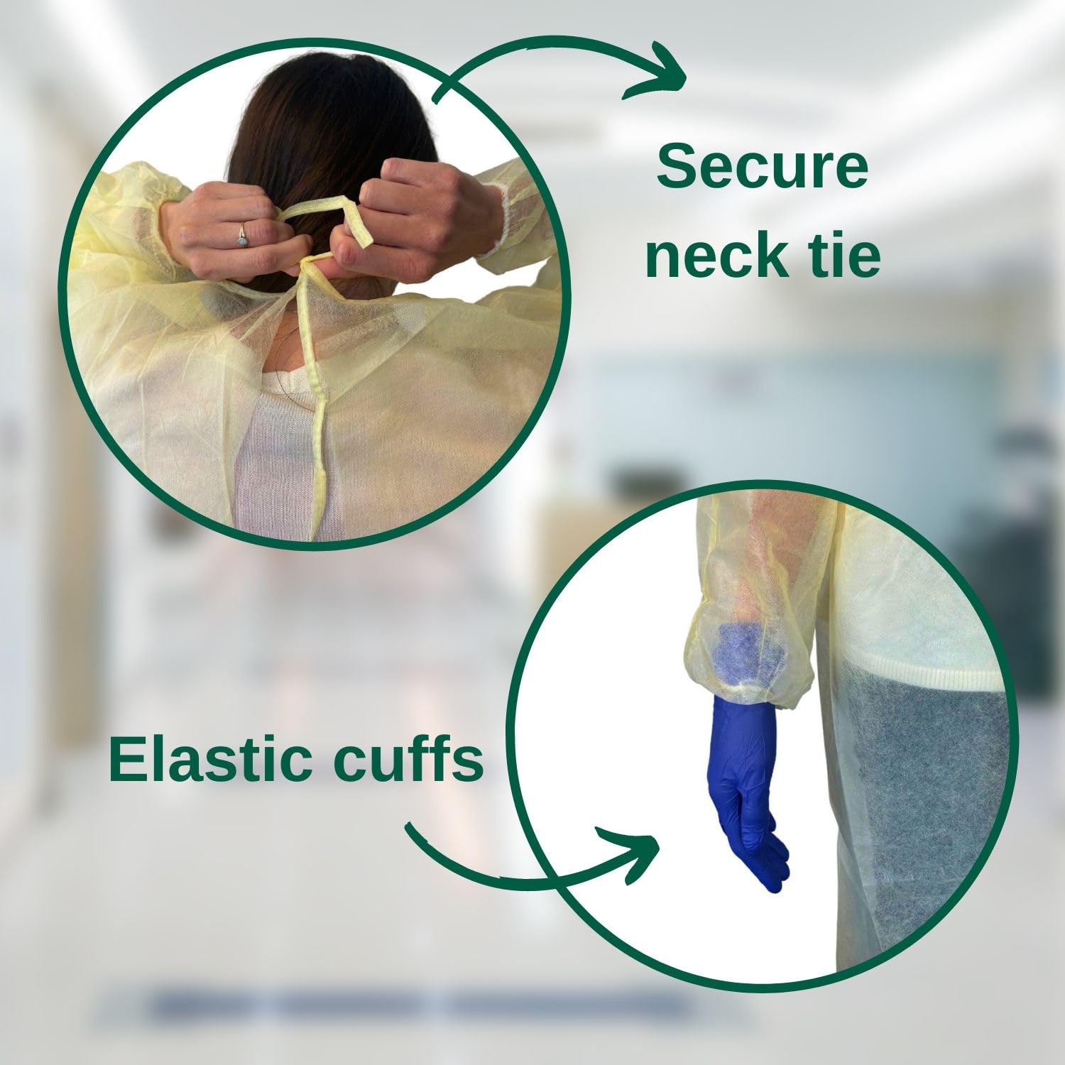 HCS Adult Large Isolation Gowns (10 yellow PPE Disposable Gowns) with Purple Disposable Nitrile Gloves (Medium, 250/box)