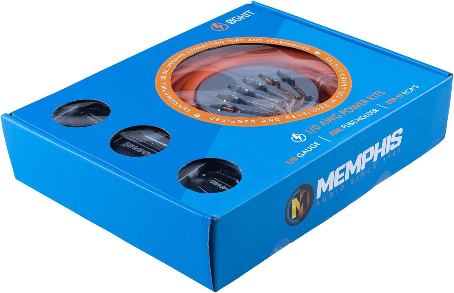 Memphis Audio 0GKIT 0-Gauge Amp Install Kit with ANL Fuse Holder with One 250A Fuse, and A Pair of ETP-17 17-Foot RCAs