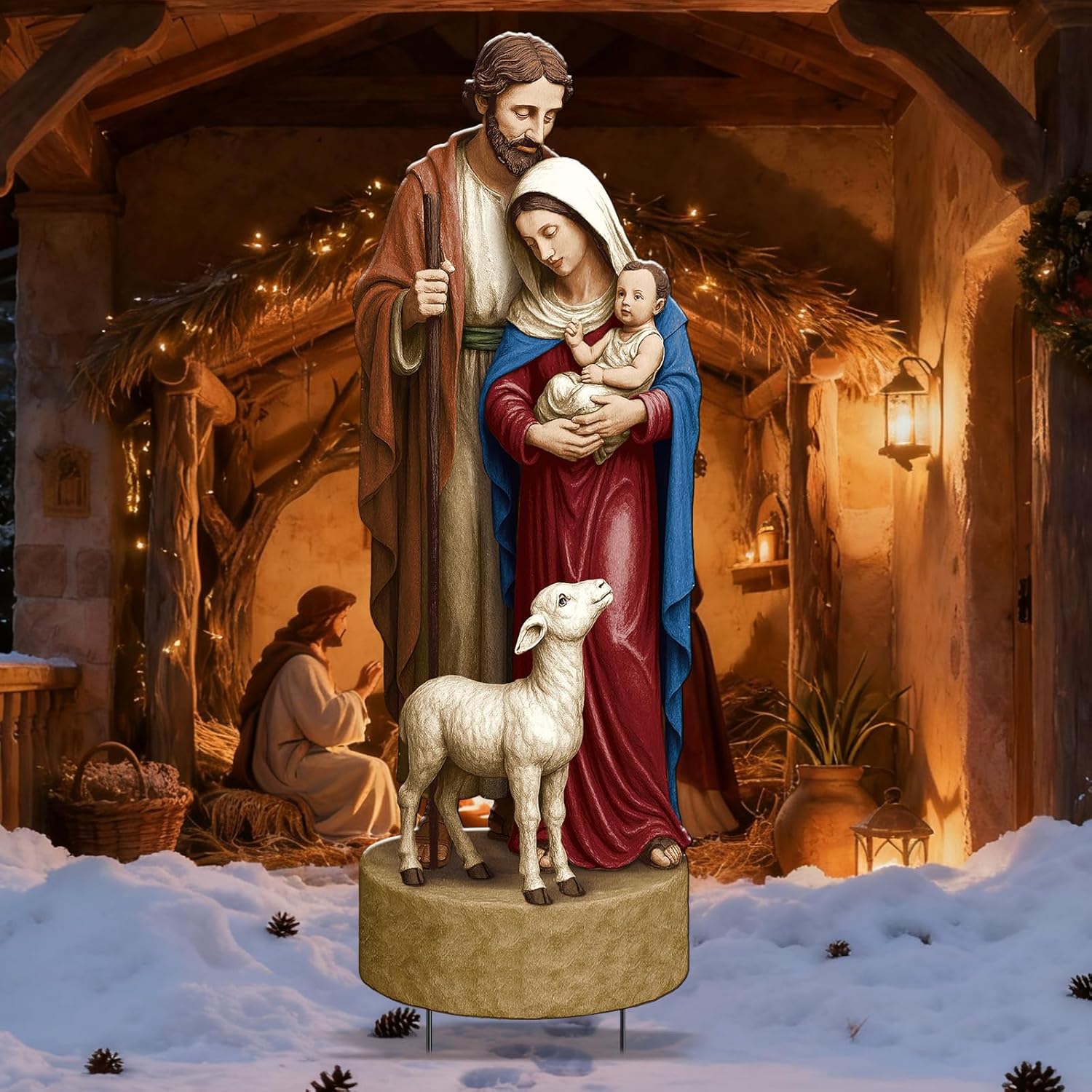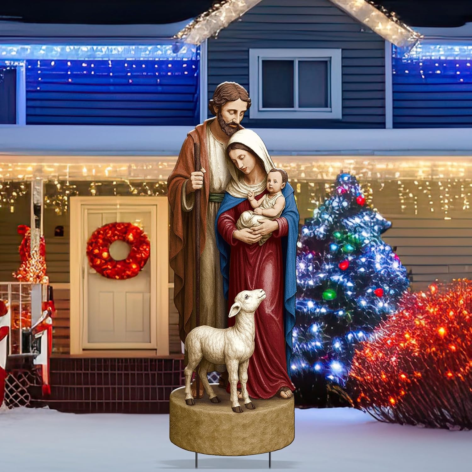 Features: Our outdoor courtyard decoration is a thoughtful and nice gift choice. This energetic decoration is suitable for holiday occasions, housewarming or anyone who likes to decorate outdoor space. It is a nice souvenir of love and holiday spirit. Use our outdoor courtyard decoration to enhance your holiday atmosphere. Immerse your outdoor space in the spirit of Christmas. Add a dash of festive flavor to your outdoor area, making each Christmas memorable and magical. Specifications: Material: metal Main Color: brown, white, blue, red Size: 29.92 x 9.84 inches /76 x 25 cm Package includes: 1 x Christmas nativity scene yard sign Notes: Manual measurement, please allow slight errors on size. The color may exist a slight difference due to different screen displays