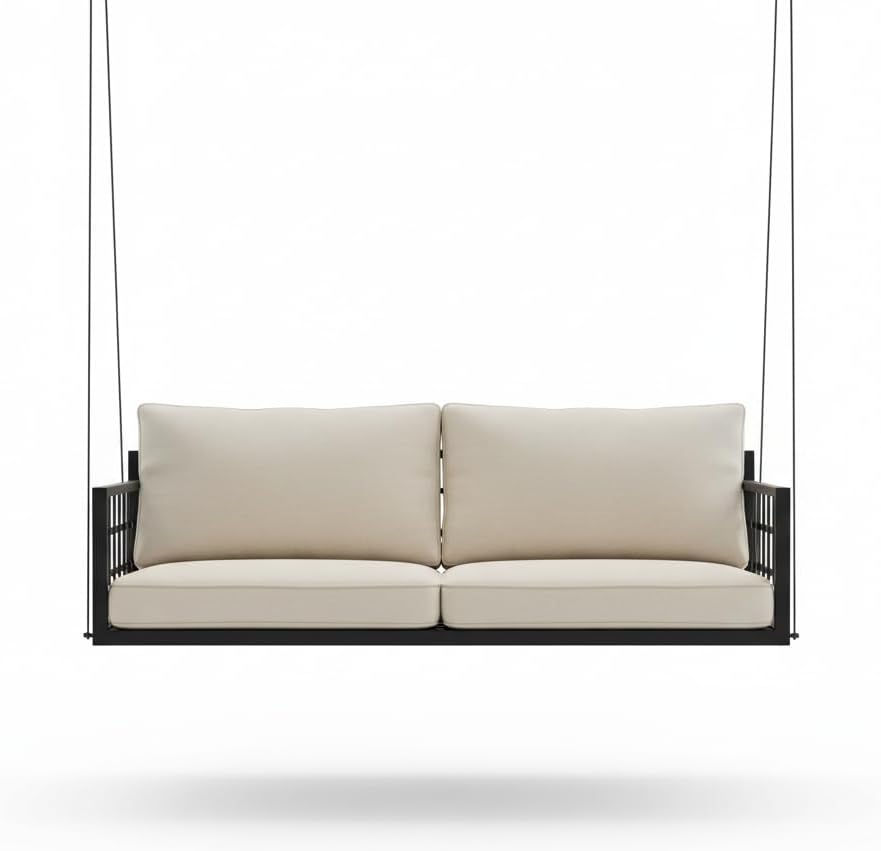 PRODUCT DESCRIPTION Transform Your Outdoor Space into a Serene Oasis. Escape the everyday and unwind in style with the Homeartparis Handcrafted Veranda Swing. Designed for those who appreciate both modern design and ultimate comfort, this swing is more than just a piece of furniture—it's your new favorite spot to relax, read, and connect. Unmatched Quality and Craftsmanship Our swings are meticulously handmade by skilled artisans. The robust metal frame ensures stability and longevity, while the thick, elegant ropes provide a secure and gentle sway. We believe in creating pieces that are not only beautiful but are built to last. Key Features: All-Weather Durability: Built from high-quality materials to resist sun, wind, and rain. Removable & Washable Covers: The zippered linen cushion covers make cleaning effortless. Simple Installation: Comes ready to be hung from your veranda, porch ceiling, or a sturdy stand (hanging hardware not included). Elegant Aesthetic: The neutral cream cushions and minimalist frame complement any decor style, from modern to bohemian. Specifications: Material: Metal Profile Frame, Rope, Linen Fabric Cushions Dimensions (W x D): 145 cm x 55 cm (57" x 21.6") Capacity: Suitable for 2-3 people. Bring comfort and luxury to your home today. Add the Homeartparis Veranda Swing to your cart now!