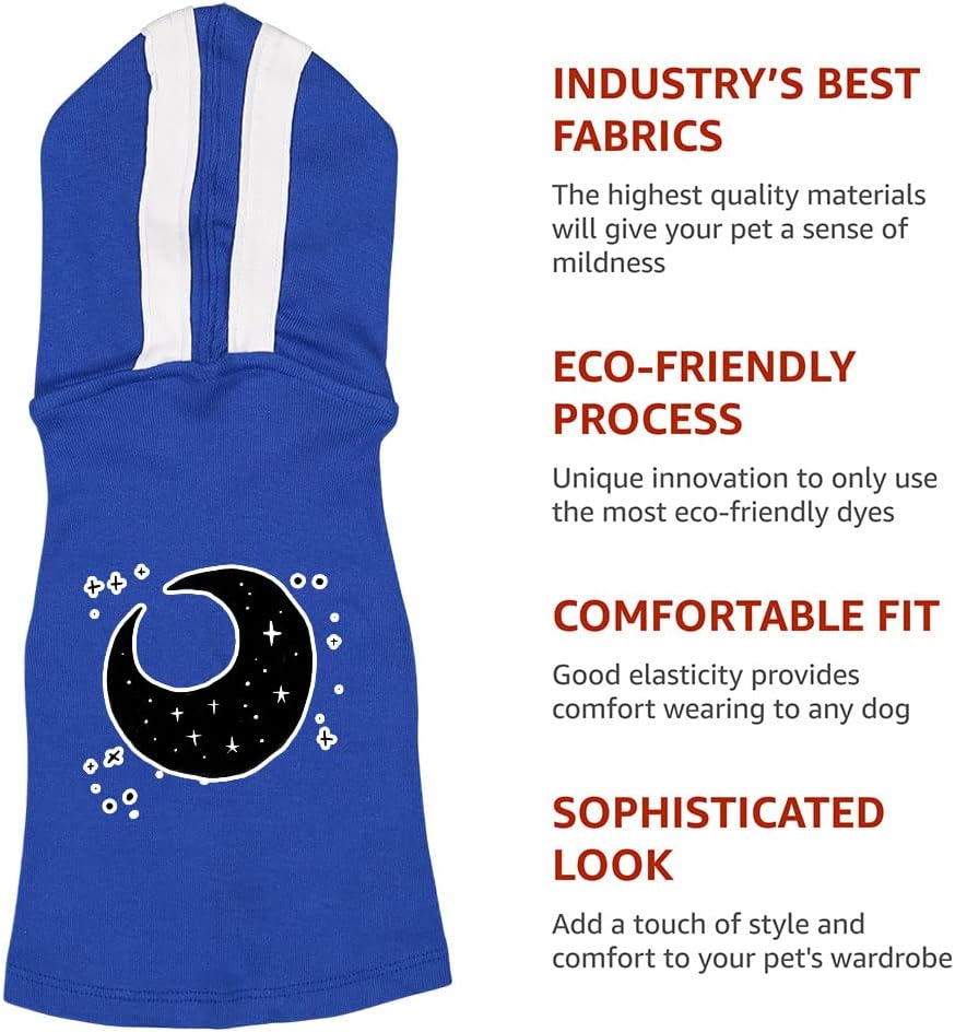 Make sure your fur babies are always warm and comfy. Crafted using a blend of breathable cotton and polyester, Moon and Stars Dog Shirt with Hoodie helps retain your dog’s body heat amidst the cold breeze of autumn and winter, or when you take them outside on a chilly night. Soft and stretchy, Art Print Dog Hoodie will feel like an incredibly comfortable whole-body hug, which may help your dog relax when they’re feeling stressed.