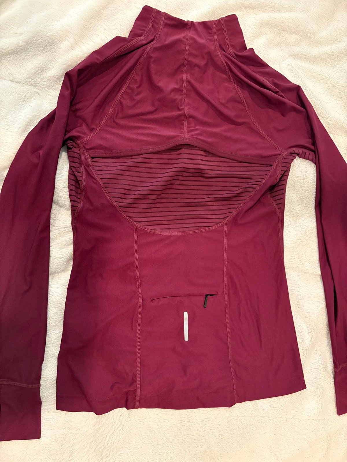 Back zipper and design offers breathable warmth and easy venting