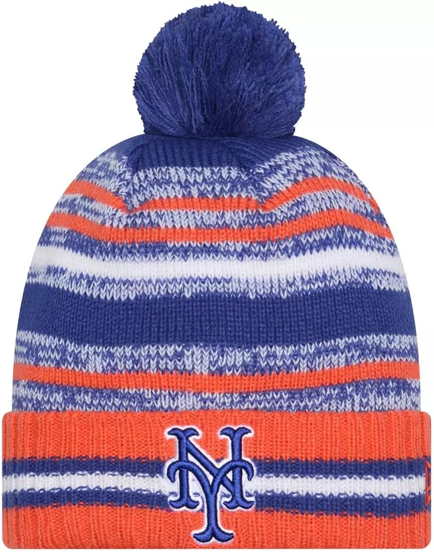 Sport your Favorite Team Pride, keep warm, and make a fashion statement with this great looking beanie hat with Pom from New Era. This MLB Knit from New Era is a cuffed knit with an embroidered logo at the front, stitched New Era flag at the wearer's left side, and a plush pom at the top.