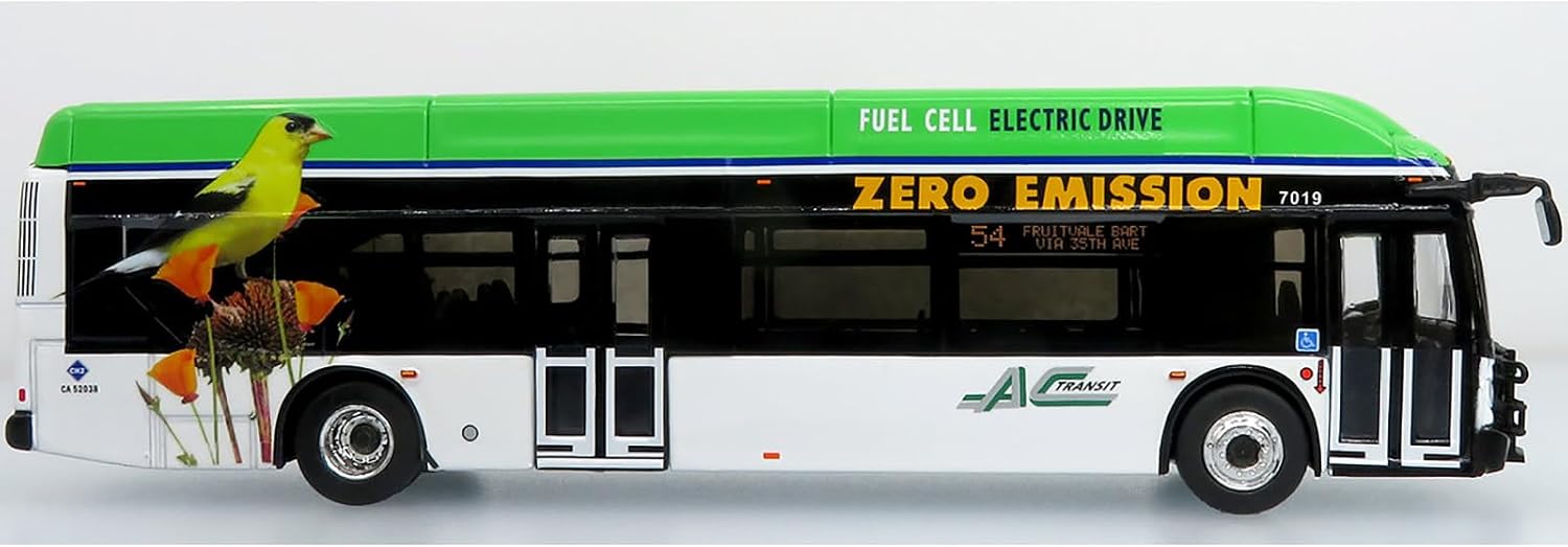 Brand new 1/87 (HO) scale diecast model of New Flyer Xcelsior XHE40 Transit Bus "AC Transit - Zero Emission" White and Green with Graphics "The Bus & Motorcoach Collection" Limited Edition die cast model 87-0535