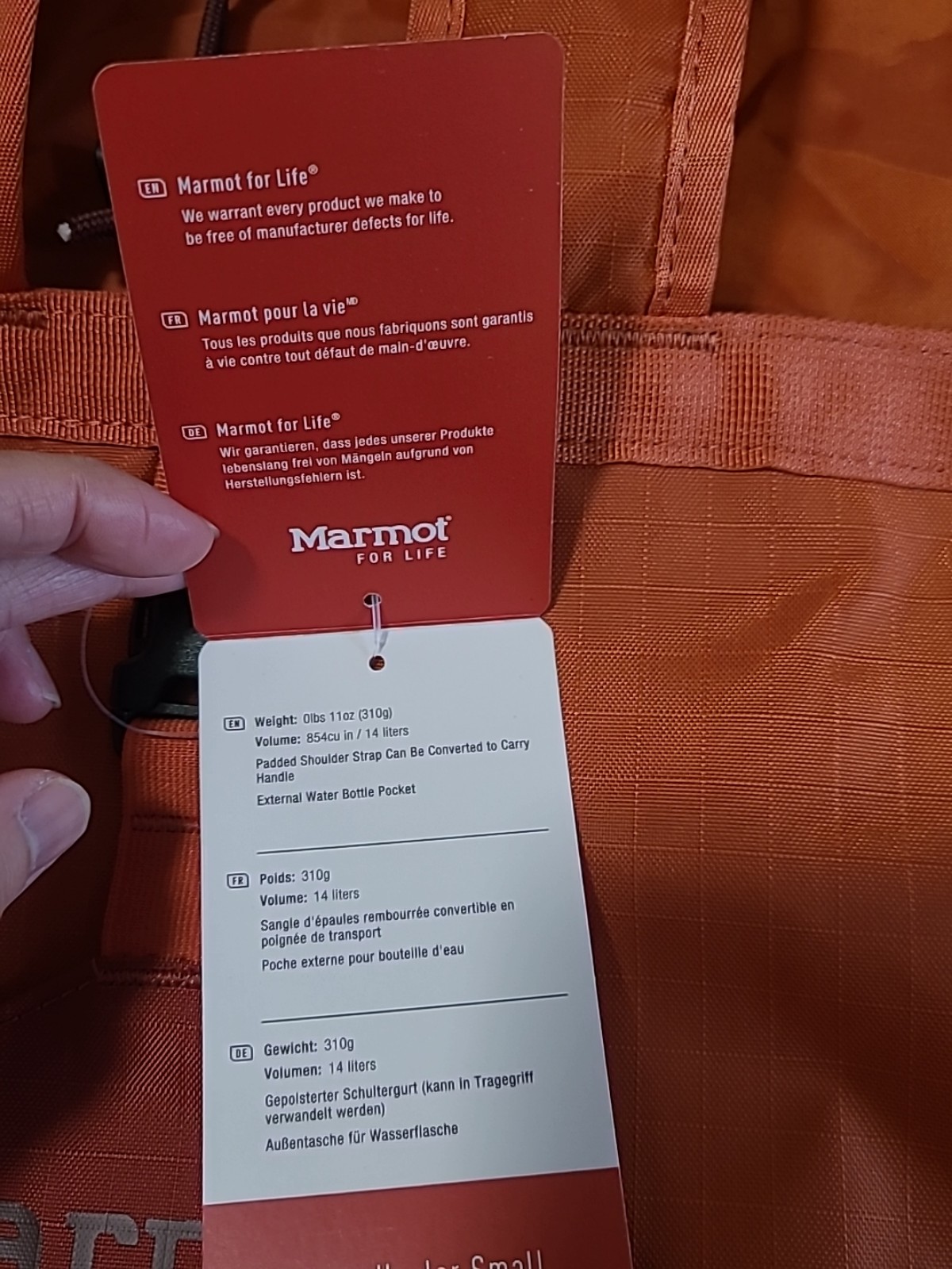 New Marmot Urban Hauler Backpack Day Pack Tote Small 14L Burnt Orange Red NWT