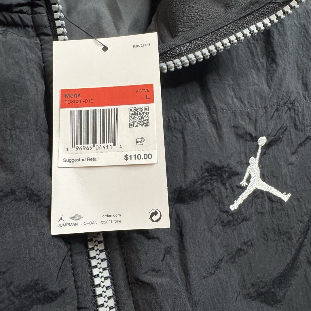 This Nike Air Jordan Essentials Fleece Vest in size L features the iconic Jumpman logo on the front, making it a stylish and versatile addition to any man's wardrobe. The vest is made with cozy fleece fabric and a durable nylon outer shell, making it suitable for travel, casual wear, walking, or hiking. It has a full zip closure, pockets for convenience, and a classic black color that is easy to match with any outfit. With the Nike Air product line, you can trust in the quality and design of this vest for a comfortable and fashionable choice.