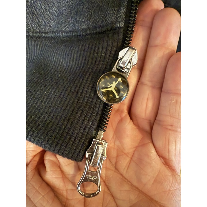 This Nike Air Jordan Heavy Jacket in Men's XLarge is crafted from a Cotton Blend knit fabric with a full double zip closure and a stand-up collar. The jacket features the iconic Jordan logo and the number 23 legacy detail in Concord color on a Wolfe Grey background. Ideal for casual wear in Winter, Fall, or Spring, this mid-length jacket is machine washable and offers a regular fit for a classic outdoor look with a performance focus on basketball activities.