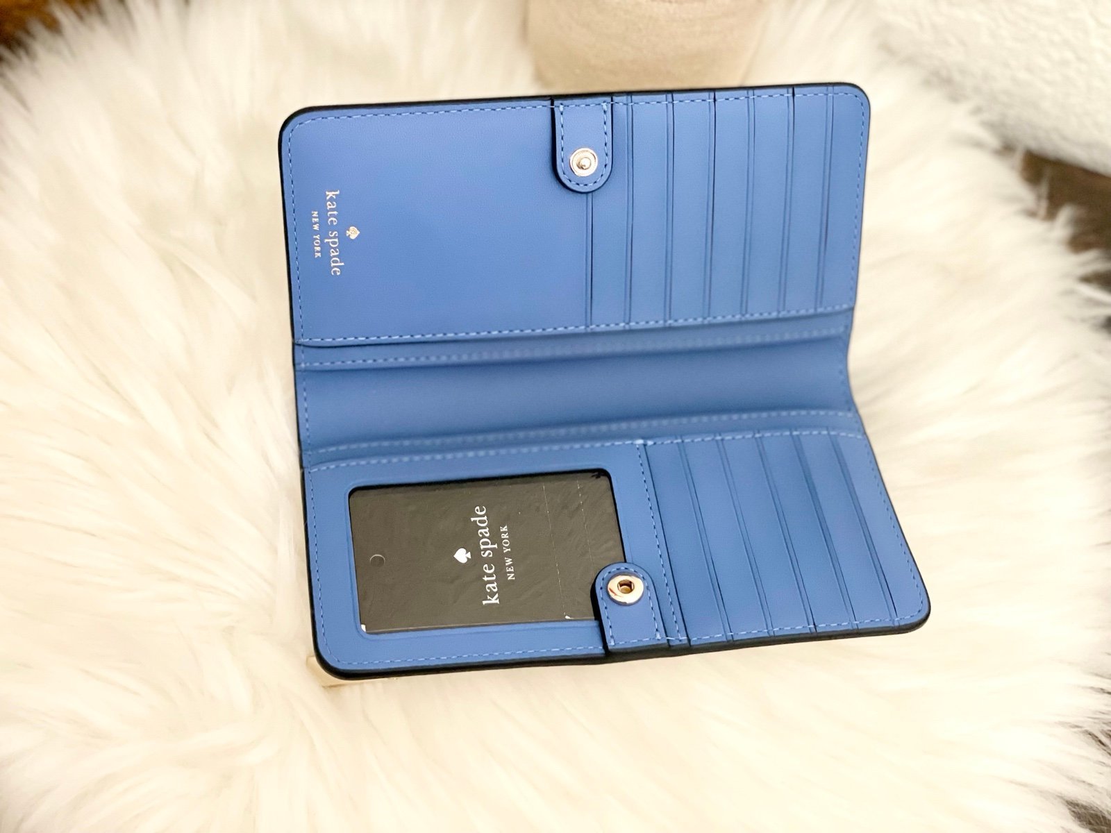 interior: 12 credit card slots, id window, 4 slip pockets