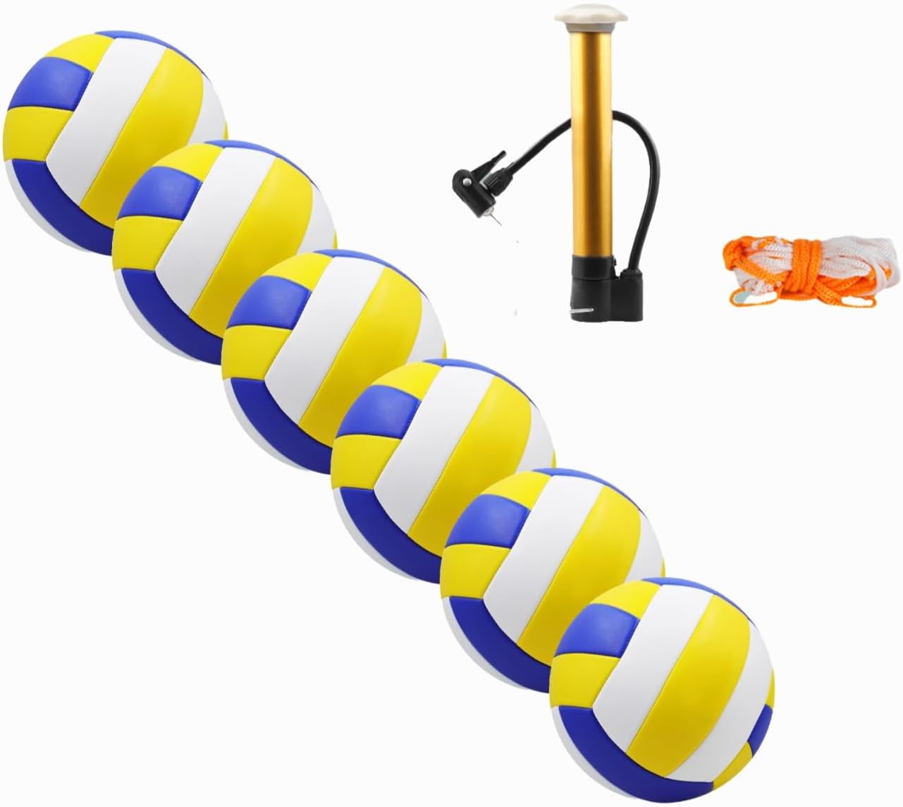 This is an official size 5 volleyball, suitable for student exams, professional competitions, outdoor training, beach volleyball, party and entertainment special balls. The material is PVC, and the sewing method is machine sewing. The leather is delicate, soft, elastic, stable, and more durable. You will receive 6 equally sized volleyballs upon placing your order, along with a complimentary air pump and ball bag。