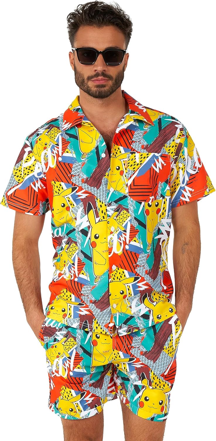 Hot days call for cool outfits. This OppoSuits men’s Minecraft Summer Set brings the iconic pixel look to real life with a bold green all-over print. Made from lightweight, breathable fabric, this matching short-sleeve button-up shirt and shorts set offers a comfortable regular fit for warm weather. Officially licensed Minecraft, it’s perfect for summer parties, vacations, festivals, or casual everyday wear. Includes shirt and shorts.