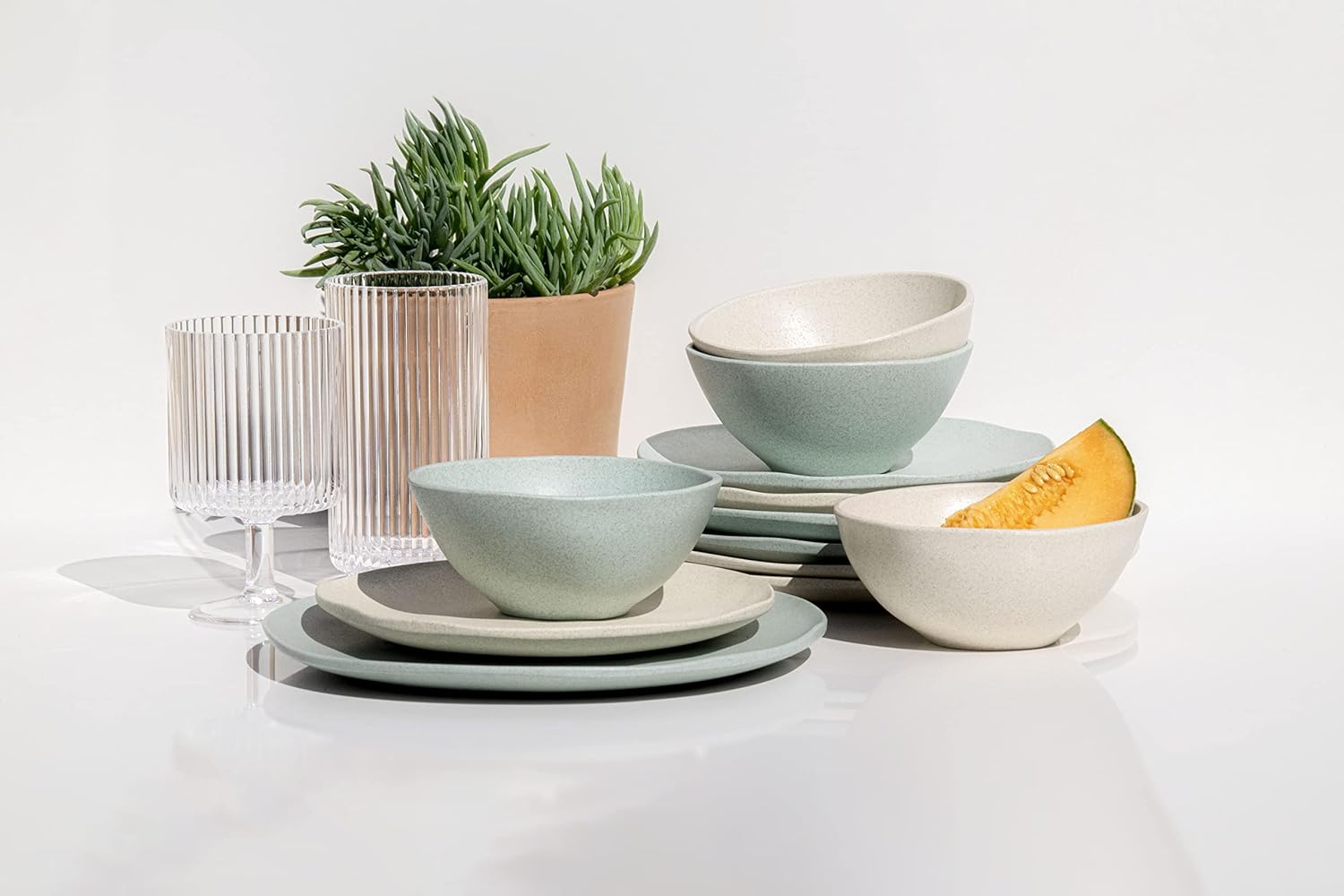 Understated and built to last, this Abode Homewares Organic Sage Green Salad Plate Set is ready for whatever the day brings. Each of the six plates features a free-form edge and a soft blue-green tone with a lightly speckled surface that comes naturally from the wheat fibers woven into the material. At 8.6 inches wide, each plate is perfectly sized for a crisp side salad, a slice of dessert, or a spread of appetizers. Wheat Straw Polypropylene gives this dinnerware a tactile, ceramic-inspired look with reliable everyday durability, and it is safe to reheat in the microwave for added convenience. These shatter-, chip-, and scratch-resistant plates handle busy family dinners, camping trips, and lively outdoor gatherings with ease. Stacking neatly inside one another, they save space in any cabinet, pantry, RV, or camper. A quick run through the top rack of your dishwasher is all it takes to get them ready for the next meal. Every plate is food-safe and BPA- and phthalate-free, so the whole table can eat with confidence.