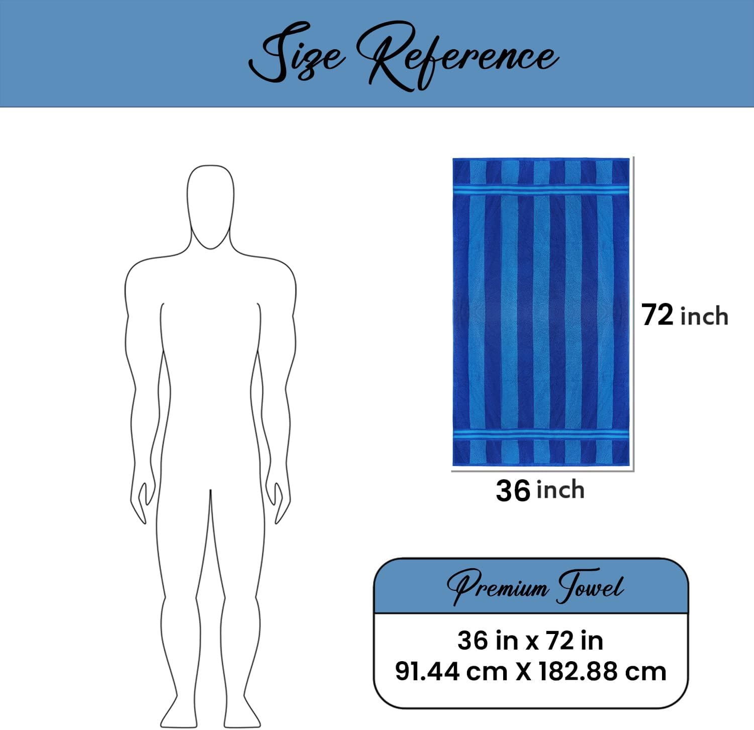 Organix Oversized Cabana Striped Beach Towel 36"x72", Large Highly Absorbent Towels, 100% Ringspun Cotton Bathroom and Pool Towels 4 Pack Adult, Luxury, Quick Dry Lightweight- Royal Blue/ Turquoise