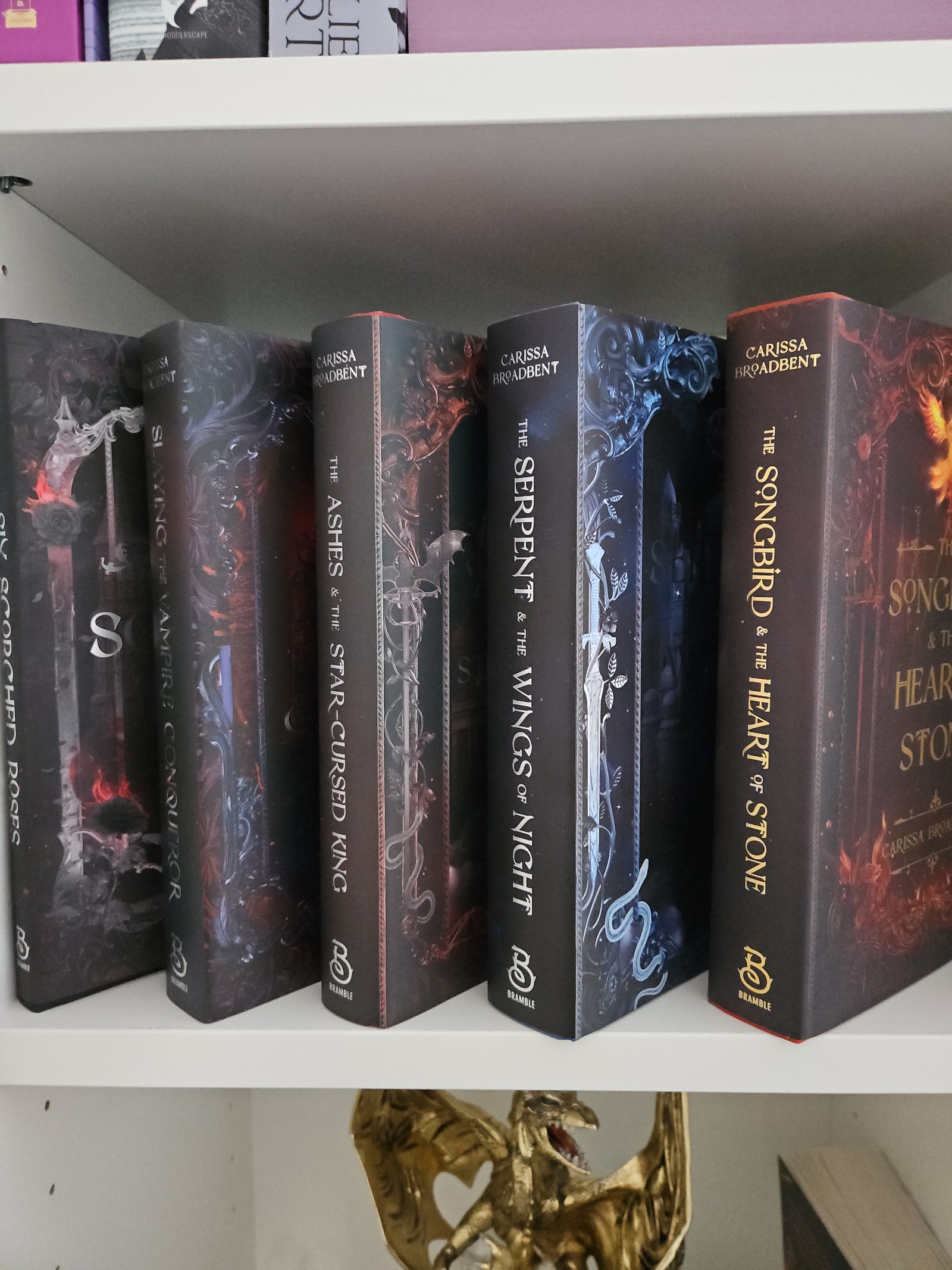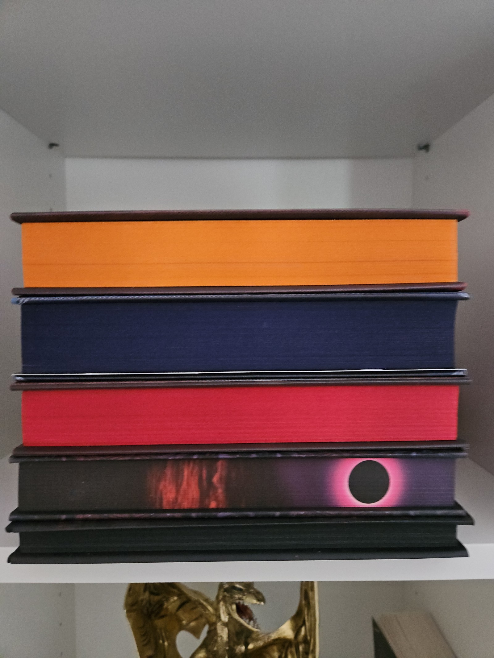 Gorgeous dust jackets over foiled hardcase, ribbon bookmarks.