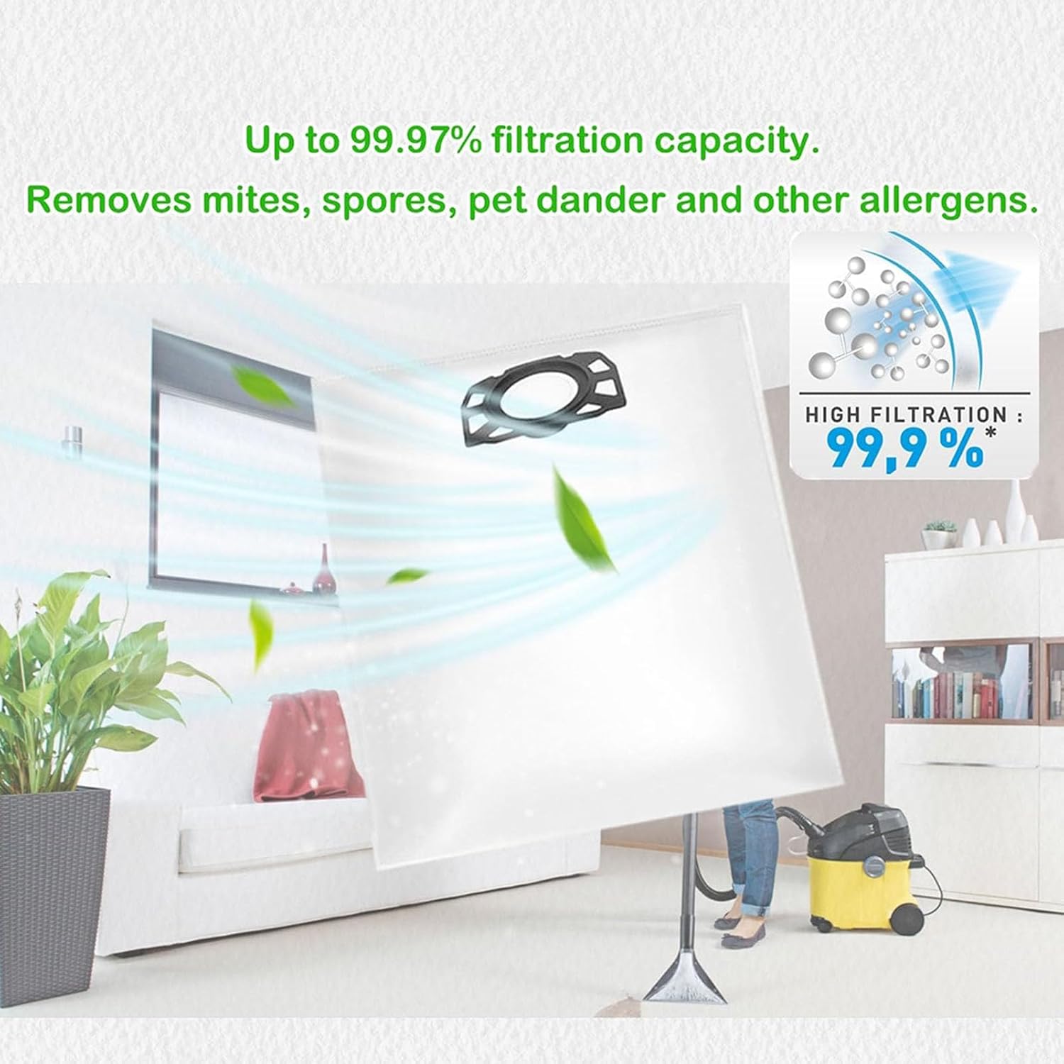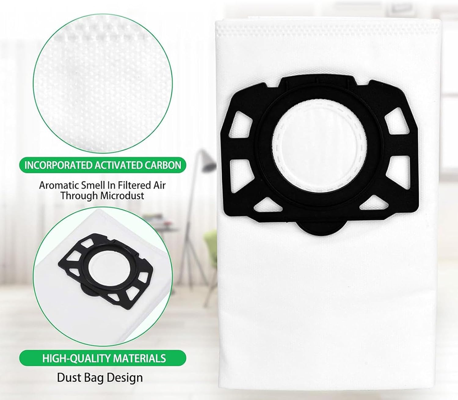 Pack of 6/15 Robot Vacuum Bag Vacuum Bag Bag Collection Bag Nonwoven Texture Vacuum AccessoryFeatures:Ensures optimal with our vacuum bags, perfectly suitable for various models including WD4, WD5, and MV4, offering seamlesses connectivity and efficient Crafted from nonwoven fabric, these vacuum bags feature a powerful multi layer filtrations systems that effectively captures and fine particles, maintaining freshness air Ideal for household users focused on hygienes and air office professionals needing regular space maintenance, and car enthusiasts seeking thorough vehicle Perfect for various environments, from home areas like living rooms and bedrooms to vehicles and office spaces, ensuring comprehensive wherever needed.Designed for durability and ease of use, these vacuum bags a large capacity to minimize frequent changes, making it suitable for extensive tasks in industrial settings as well.Specifications:Texture: NonwovensApplicable Model: For WD4, WD5, WD6, MV4, MV5, MV6, WD3, WD2 KWD1, KWD2, KWD3, MV3, 1.348-191.0, 1.348-151.0, 1.348-194.0, 1.348-111.0, 1.629-804.0Size: Approx. 16.5x19inch(42x48cm)Package Includes:6x BagsOr15x BagsNote:Please allow 1-2cm errors due to manual measurement.Due to the differences between different monitors, the picture may not reflect the actual color from the item.