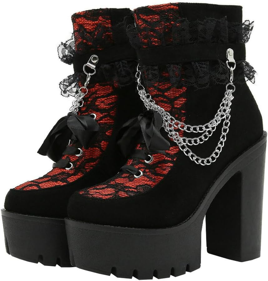 Welcome to Parisuit Store! Style: Goth Lace Vintage Platform Combat Boots Occasions: Daily/Dressing/Festive/Punk/Victorian Material: Synthetic Heel Type: Chunky Block High Heel Heel Height: 13cm Platform: 5cm For more high-quality and favorable shoes, please search for "Parisuit".