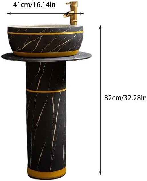 This pedestal sink is a perfect addition to home bathrooms, courtyards, parks, hotels, shopping malls and other commercial environments. Product name: Pedestal sink Product material: Ceramic Product includes: sink*1+faucet*1 Note: Except for the main products shown in picture, are demonstration purposes only do not include products. Due lighting, display, personal color, etc., there may be color difference between real object photo. Please refer actual product. The above data reference only. The size manually measured will 0-5cm error. product. Thank you.
