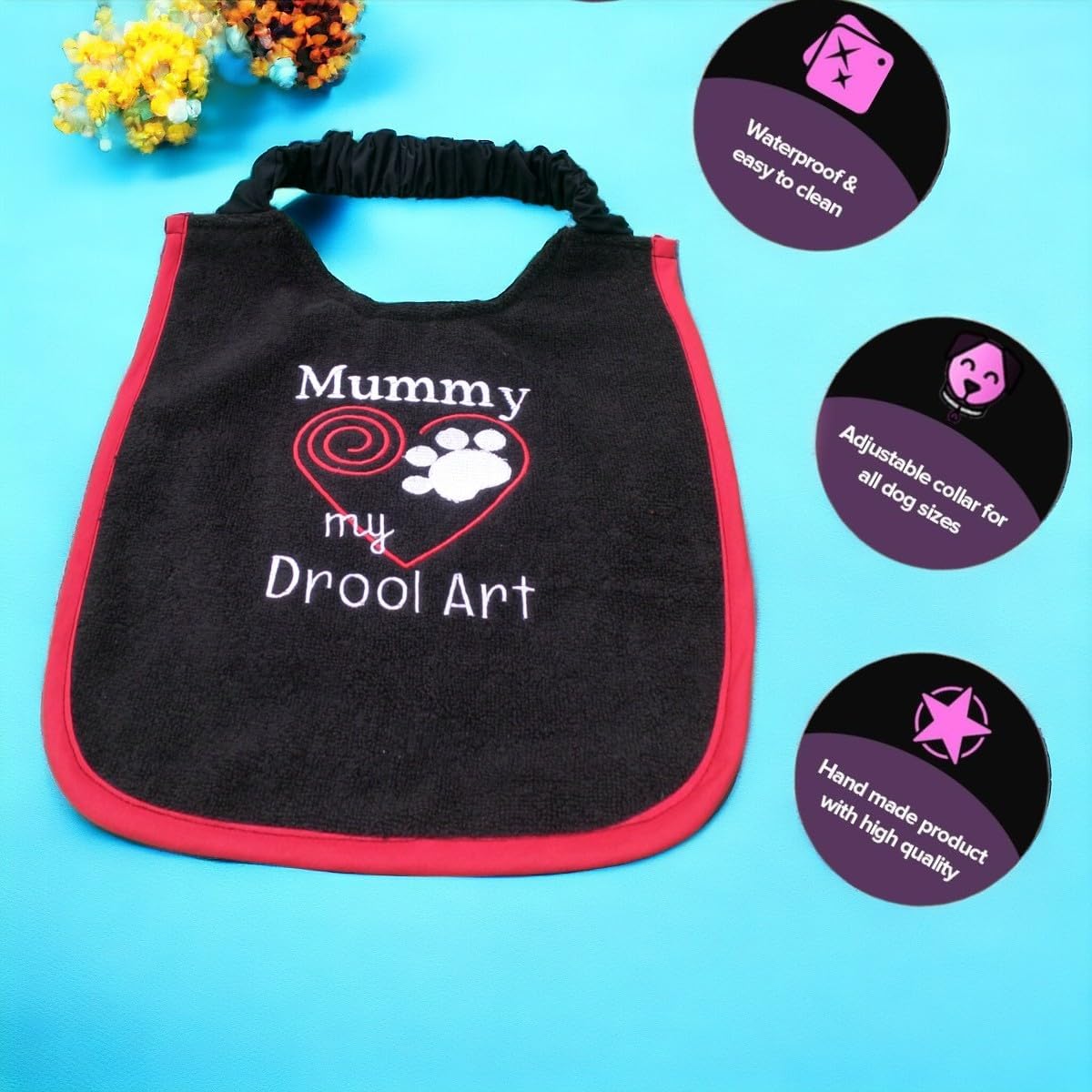 Introducing DoggiesWorld Handmade Dog Bibs - Where Style Meets Functionality! ๐พ Handmade with Love: At DoggiesWorld, we pour our heart and soul into crafting the perfect accessory for your furry friend. Each dog bib is lovingly handcrafted to ensure the utmost care and attention to detail. ๐จ Choose Your Own Bib and Embroidery Colors: We understand that every dog is unique, just like their personalities! With our customizable options, you can pick the perfect combination of bib and embroidery colors to match your pup's style. ๐ Choose Your Preferred Size: Whether you have a petite pup or a larger furry companion, we've got you covered. You can choose the size that suits your dog best, ensuring a comfortable and snug fit. ๐ง Waterproof Backing for Extra Protection: Our DoggiesWorld bibs feature a waterproof backing, providing an extra layer of protection against spills, splashes, and messy eaters. Keep your dog's fur clean and dry, all while looking fabulous. ๐ถ Comfortable and Adjustable Neck Strap: We prioritize your dog's comfort, which is why our bibs come with a comfortable and easily adjustable neck strap. Your furry friend will love wearing their stylish accessory without any fuss. ๐พ Suitable for Pups and Adults Alike: Whether you have a playful pup or a sophisticated adult dog, our bibs are perfect for dogs of all ages. Keep them looking sharp and well-protected throughout their life stages. Give your dog the gift of style, comfort, and cleanliness with DoggiesWorld Handmade Dog Bibs. Handcrafted with love, customized to your preferences, and designed for ultimate functionality, these bibs are a must-have accessory for any dog owner. Order your DoggiesWorld Dog Bib today and let your pup strut their stuff in style!