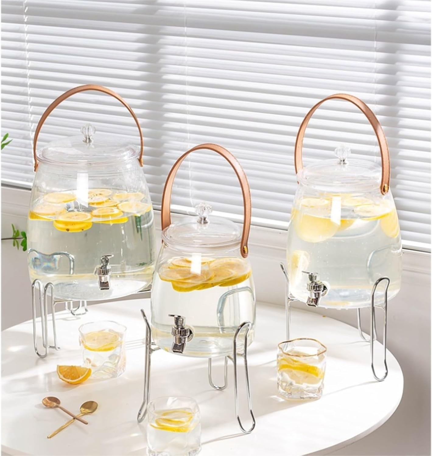 Product Name: Drink Dispenser, Water Dispenser, Beer TowerMaterial: PlasticCapacity: 3L, 5L, 9L, 15L, 25LThis party drink container features a premium stainless steel tap, ensuring a smooth, drip-free flow.This design not only adds an elegant touch to the container but also enhances its practicality, providing users and guests with a reliable and clean pouring experience.This iced tea dispenser with a tap features a sturdy leather handle and a safety lid, offering a practical and convenient user experience.The handle makes it easy to carry, while the lid helps maintain the freshness and quality of the drink, ensuring it stays at its best throughout the event.1. Our dimensions are measured manually and may have slight errors. Please understand.2. Due to differences in photography equipment and conditions, there may be color variations. Please refer to the actual product for the most accurate color representation.