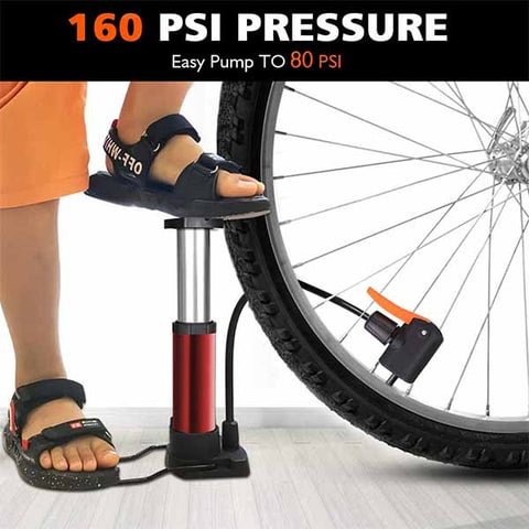 • 160 PSI Accurate Gauge】Bike Pump with Pressure Gauge accurately measures two different units in a range from 0-160PSI/11BAR. The extra-large gauge is super-clear and readable.
