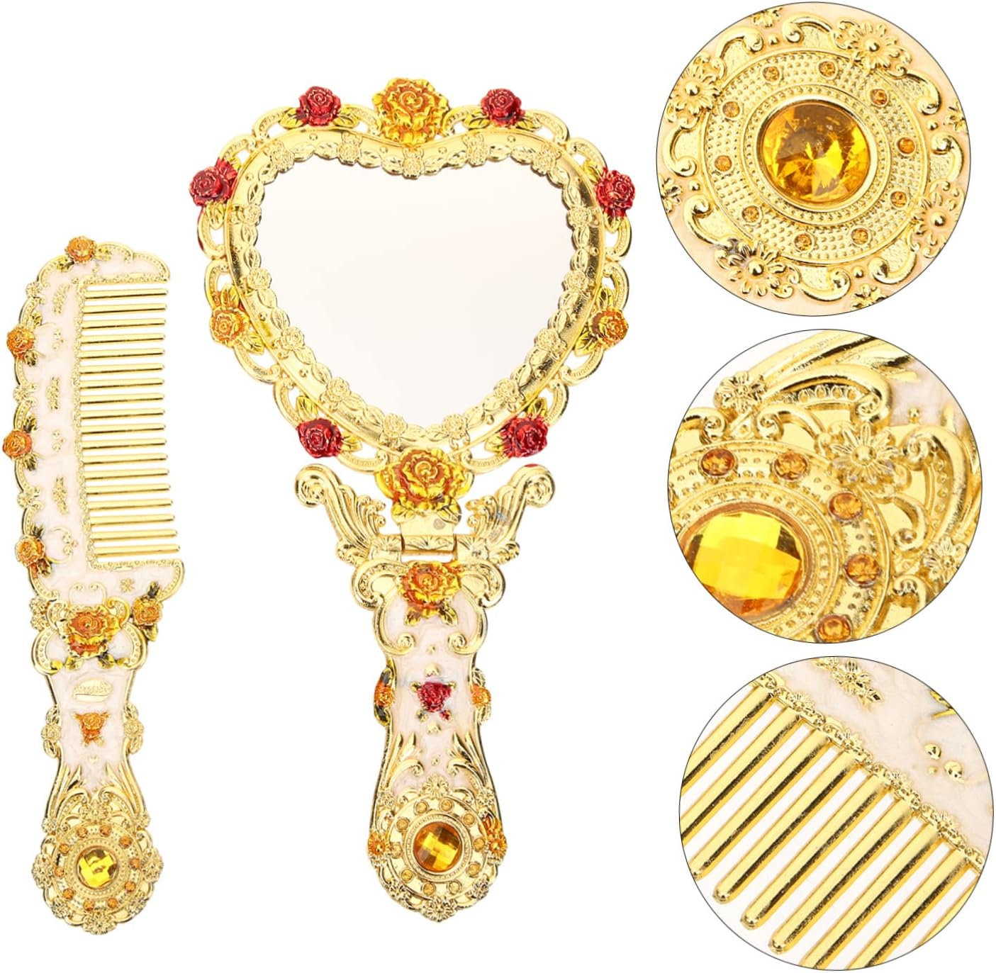Package Include 1 x mirror 1 Characteristics -Size:22.00X12.00X1.00cm/8.65X4.72X0.39in flower-shaped makeup mirror -Color:Multi hand mirror cute -Material:Metal, glass hand mirrors with handle - Our small vanity mirror will be treasured and loved by women of all ages. Excellent craft, carefully down to every detail to give it and elegant look personal makeup mirrors. - This makeup mirror and comb with delicate pattern is a real piece of artwork, look so beautiful and charming hand mirror with handle. - This super-compact and lightweight mirror and comb can be carried inside your bag wherever ! vintage hand held mirror - This pretty mirror and comb are a fantastic accessory to carry in your purse! Suitable for home, travel, school, etc hand held mirrors. - With beautiful pattern and European design, the attractive color combination and craftsmanship will make you love it. mirrorGoods Informationmirror portable With the portable design, compact size, easy to carry and for traveling and outdoor shopping.small hand held mirror Vintage style comb and mirror is manufactured with for use.mirror with handle A for a compact makeup mirror which fully displays uniqueness and taste