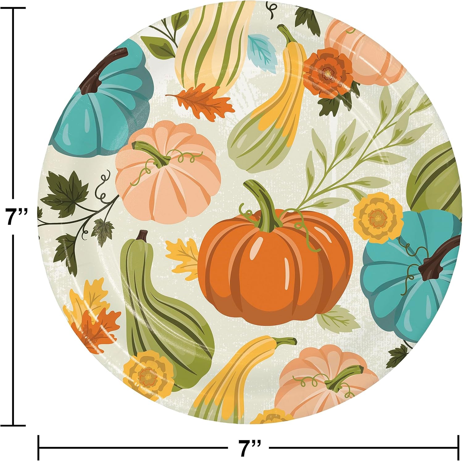 Add the special finishing touches to your fall party with these adorable pumpkin themed party supplies. They're also disposable, making cleanup a breeze! Includes: 9" paper plates (16 count), 7" paper plates (16 count), 5" paper beverage napkins (16 count), 6.5" paper luncheon napkins (16 count), 54" x 108" plastic tablecloth, 6" pumpkin honeycomb centerpiece (2 count) and 12" pumpkin honeycomb centerpiece (1 count).