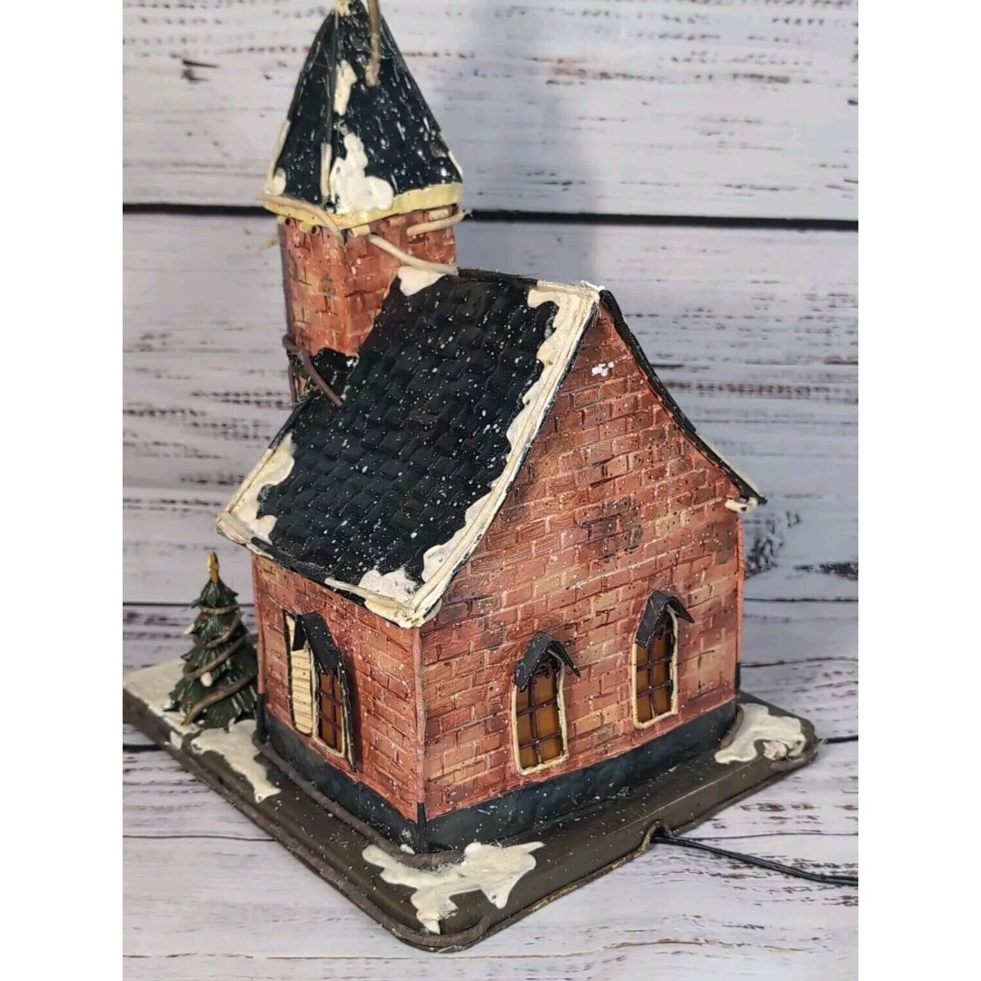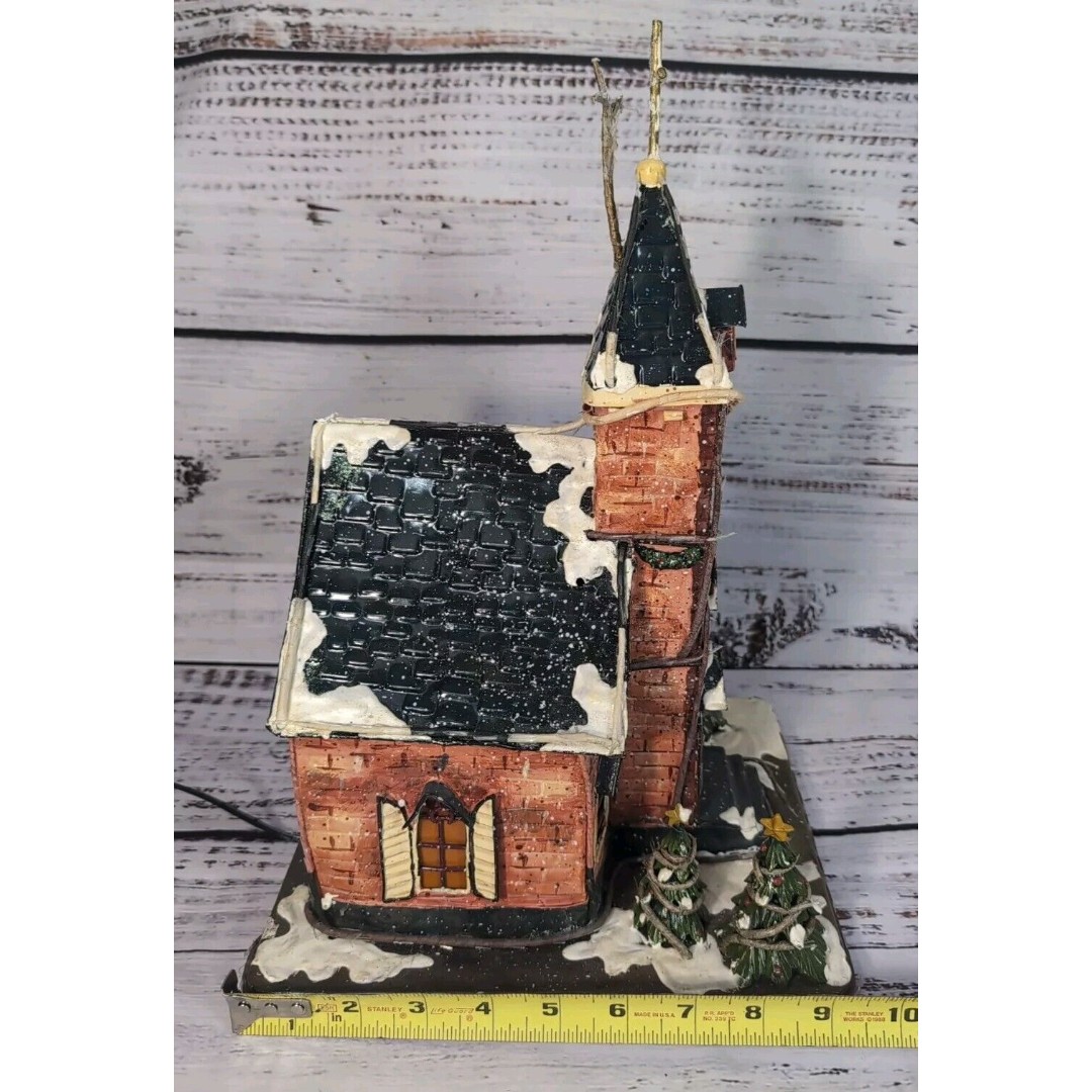 This rare find; unique Christmas village church building is beautifully handcrafted by an unknown artist. The intricate details and multicolor design make it a perfect addition to any medium-sized village scene. Whether you're a collector or just starting your Christmas village, this piece will surely bring joy and charm to your holiday decor.