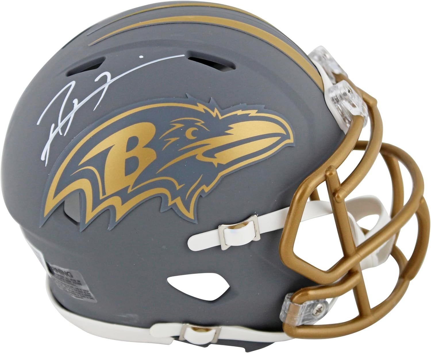 This Autographed w/ White Signature Alternate Slate Speed Mini Helmet W/ Uv Mirrored Back Acrylic Display Case has been Personally Signed by Ray Lewis of the Baltimore Ravens. This item is 100% Authentic to include a hologram by Beckett Authentication Services. This item will come with an affixed Beckett Authentication Services (BAS) authentication sticker, which includes a scannable QR code to verify authenticity. Please note that Beckett no longer provides serial-numbered COA cards, and the attached BAS sticker will serve as the complete authentication for this item. This is a BAS Witnessed Protection Program item which means a Beckett Authentication Service representative was present when this item was being signed. We conducted an autograph signing with Ray Lewis where multiples of the same item were signed. While the photographs are representative of this item, the size, placement and strength of the signature may vary. Each item is hand signed, therefore, each autograph is unique. This item can be verified through BAS Witnessed.