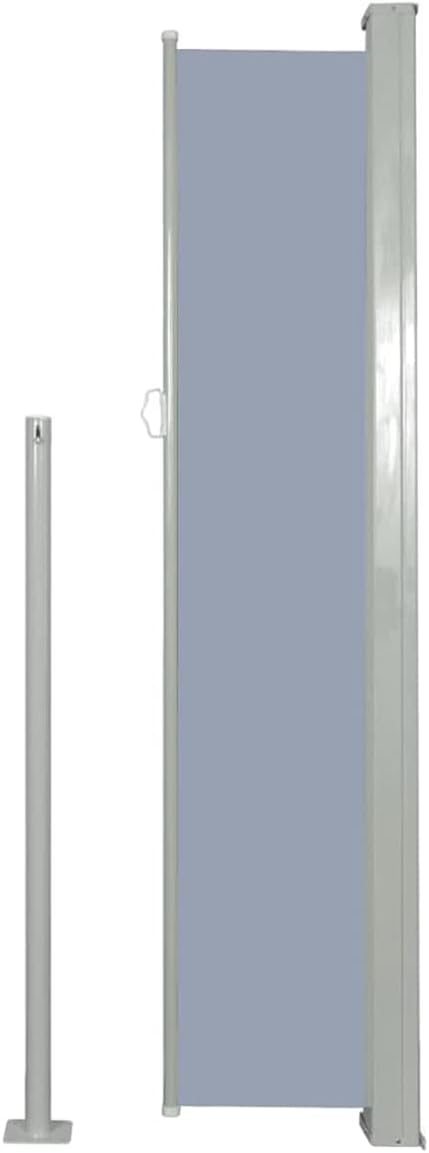 This simple yet stylish side awning provides privacy and creates a cozy place. It also helps to protect against the wind and low-lying sun. The screen is made of UV- and tear-resistant polyester. The cassette is installed on a wooden pole in the vertical position, and the retractable awning can be pulled straight out. The width of the windscreen is adjustable to up to 118 inches. The windscreen is even equipped with an automatic roll-back function. Delivery also includes mounting accessories. Post material: steel. Color: Silver gray (posts), gray (screen) Size: 63" x (0-118)" (H x W) Fabric: Polyester: 100%
