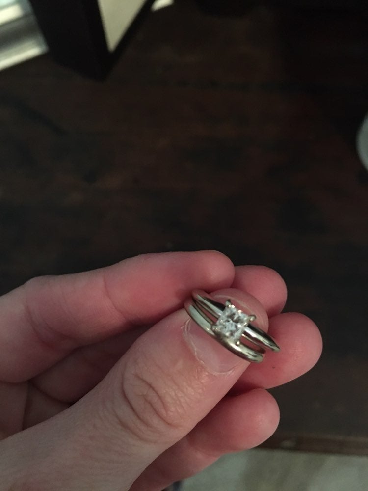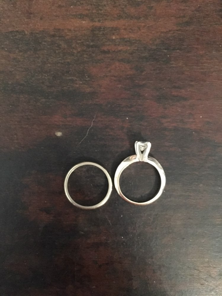 1/2 carat diamond set in white gold. Has a white gold band that comes with it making it a set. Size 4.5.