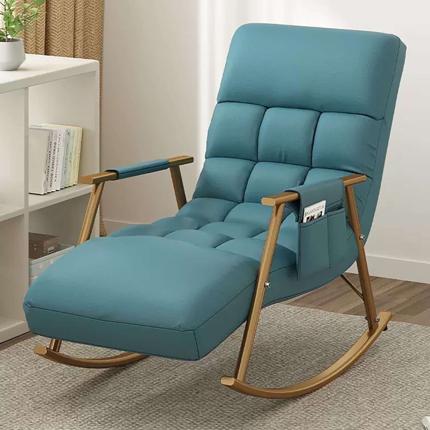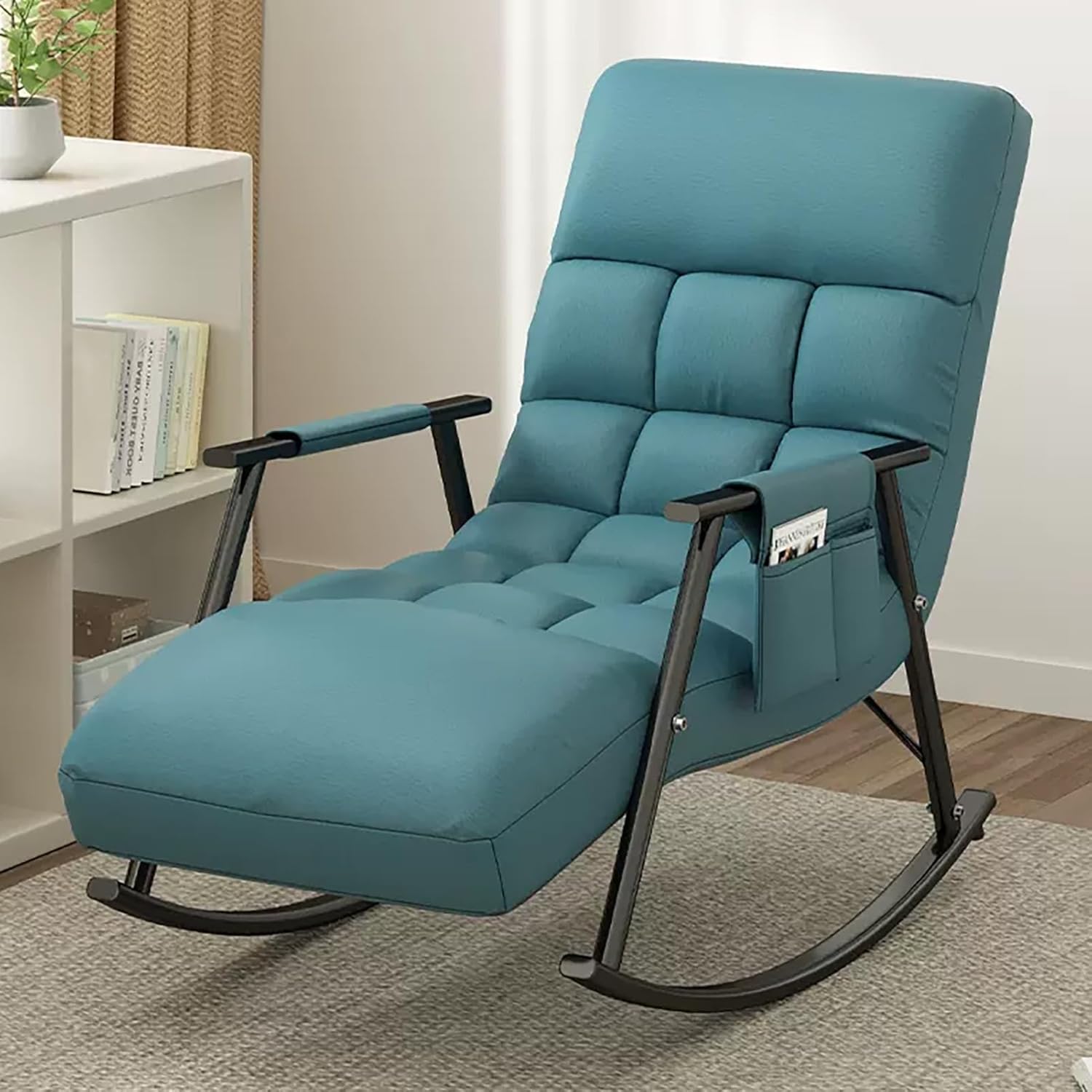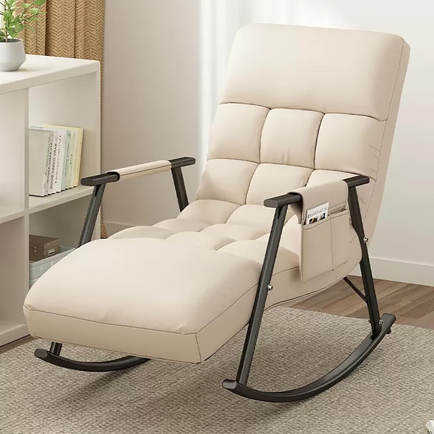 ❤ The JIAOCKJIAO rocking chair adopts an ergonomic arc design, which shakes gently and smoothly. High-density seat cushion, elastic, not easy to collapse, giving you a comfortable sitting. and effectively relieve your fatigue.❤ The overall frame of the rocking chair are made of metal, which ensures great stability and a high load capacity of 150 kg. The thickened metal base further increases the stability of the rocking chair.❤ The rocking chair with side pocket keeps your recently read books or magazines close at hand, creating a perfect reading nook for you. ❤ Suitable for your living room, nursery, bedroom, study, courtyard, family room or balcony, allowing you to enjoy and relax after exhausted work.Specification:Product Name: Rocking ChairFrame material: Metal tubeCushion fabric: Technology clothBackrest Filling material: PP cottonWeight capacity of chairs: 150 kgRequires assembly: Yes►Note:1. The above size parameters are measured manually, there will be an error of about 2-5 cm.2. There may be slight color differences due to the display, camera, and other factors, so please refer to the actual product.