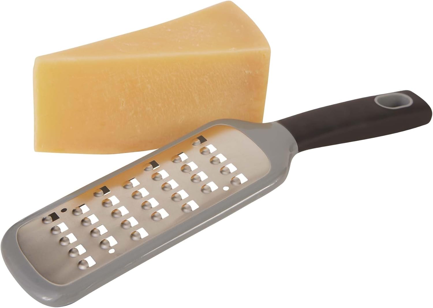 Our RSVP International Paddle Grater is meticulously crafted for enduring durability and exceptional performance. The extra-course, surgical-grade stainless steel blades are etched for enduring sharpness, while the non-slip handle and foot ensure a secure and comfortable grip during use. This hand-held grater is a culinary powerhouse, we perfect for grating a variety of foods that benefit from a fine textured shred, perfect for grating hard cheeses, chocolate, ginger, nutmeg or zesting citrus, this ultra-sharp grater delivers precision and efficiency. With space-saving in mind, our compact paddle grater features hanging holes and a low-profile design, offering versatile storage options to maximize your kitchen space. Cleaning is a breeze with top-rack dishwasher safety, and the slide-on cover not only protects the grating surface but also ensures safe storage when not in use. Designed with a slight angle, complemented by an ergonomic non-slip handle and wide base for comfortable control, easy maneuvering, and reduced hand fatigue during extended use. Elevate your culinary experience with this efficient and thoughtfully designed paddle grater. When all the right people, ingredients, kitchen tools, and recipes come together, we call this The Art of Gathering. Gather the ingredients, gather the cooking tools, gather friends and family.
