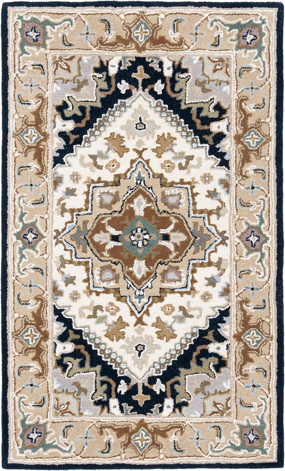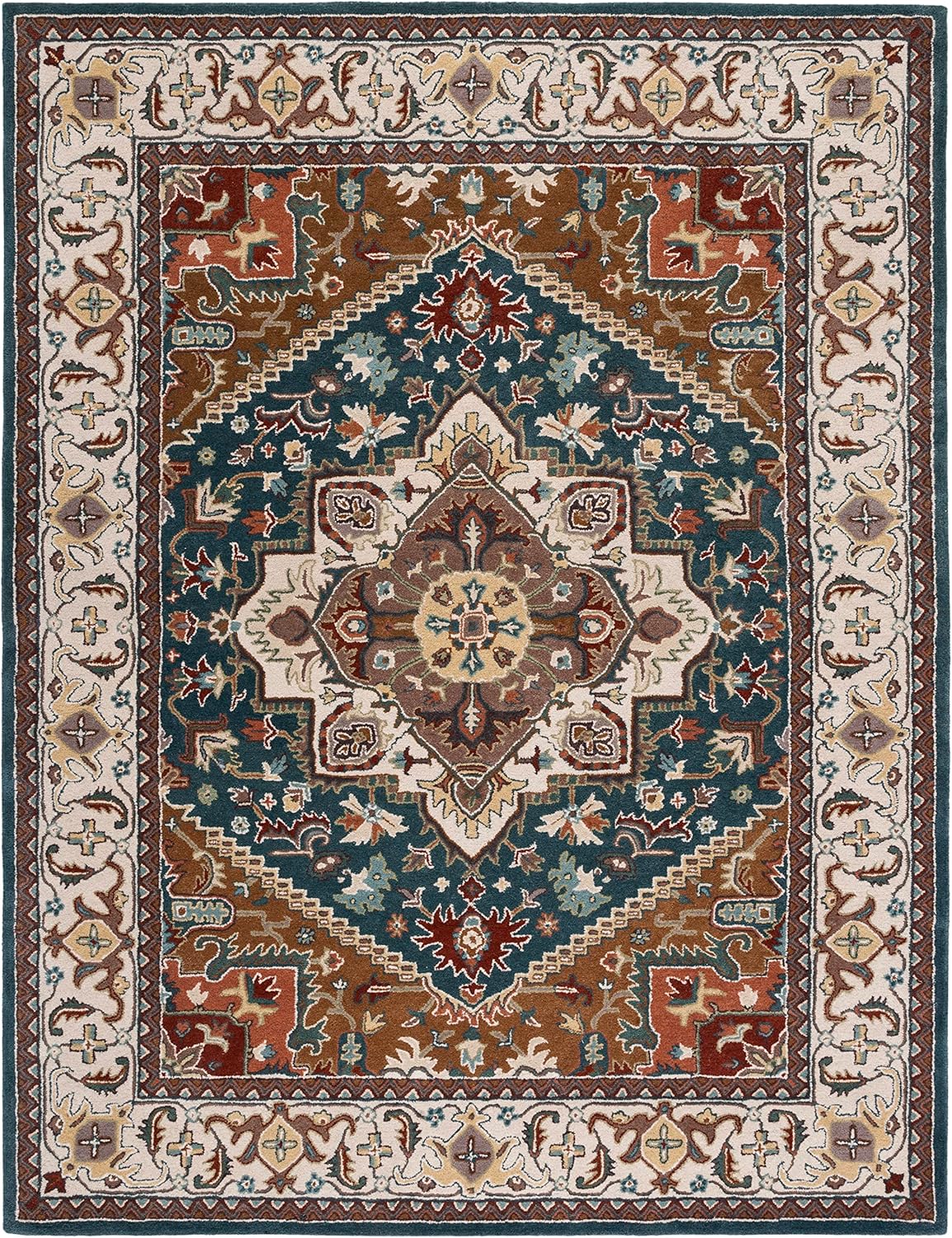 Set the stage for formal dining and sitting rooms with this stunning traditional rug from Safavieh’s Heritage Collection. This collection combines classical style and old world design with modern hand-tufting techniques. Displaying some of the finest Persian and European Heriz design motifs, this rug has been reinterpreted for today’s trends. With rich, luscious detailing and a vibrant feel, this rug will bring any living space to life.This rug features an elegant central floral medallion outlined in a deep blue, matching its border color. Among the colors featured are pale blue, sage, burgundy, beige, cream, rust, and grey. Endless decorating options are possible, whether you’re looking for a lavish adorning statement piece, or an artful complement to any room. Hand-tufted of pure wool with a strong cotton backing, these traditionally beautiful rugs can withstand even the most high-traffic areas.Durable cotton canvas backing Country of Origin: IndiaPrimary Material: Wool Style: Traditional Primary Color: RedRug Dimensions: 11' x 15'
