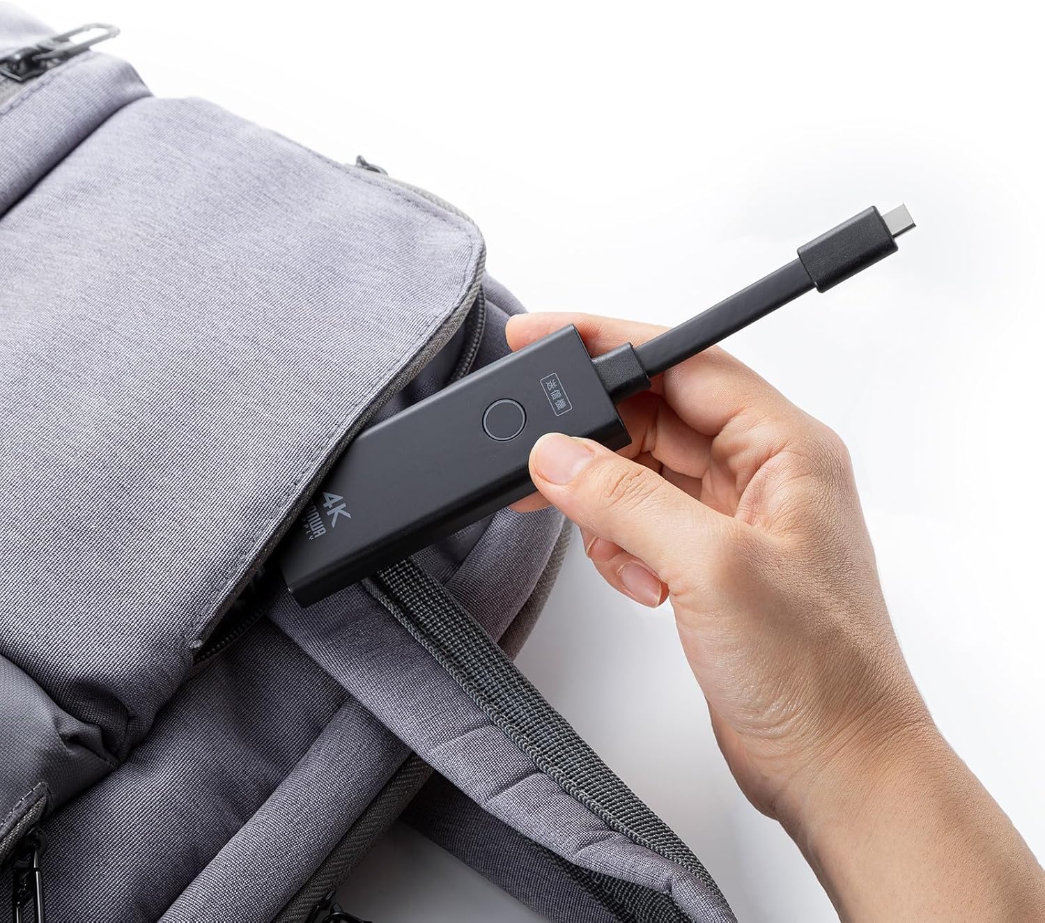 A single unit transmitter that can be added and expanded to the wireless HDMI extender VGA-EXWHD12 and VGA-EXWHD12C. Easy pairing operation allows you to add or add to existing VGA-EXWHD12 and VGA-EXWHD12C environments. Multiple HDMI devices can be switched between one button for wireless output ●Powered by USB from Type-C port, it can be connected by a single cable, making it ideal for conference systems and presentation environments using laptops and tablets. Compatible with USB Power Delivery (USB PD) standard PD adapter input up to 60W and can also be used to connect a USB PD compatible AC adapter to simultaneously power the connected laptop. The HDMI video signal from the Type-C output can also be wirelessly extended for high-quality audio signals. TELEC certified technical standards for use in Japan. ■Interface: Input: USB Type-C Male x 1 1 x USB Type C Female (PD Charging Only) ■Transmission distance: Up to 15m (without obstacles) Varies depending on usage environment. ■ Frequency Range: 5.1GHz - 5.25GHz ■ HDMI Standard: HDMI Ver1.4 ■HDCP: HDCP1.4 ■Video delay: at 1080p / about 100ms Approximately 250ms at 4K ■Device Control (CEC): Not supported ■Supported audio format: PCM ■ Power Consumption (Max): 4.5W 5V/0.9A Recommended to power from USB 5 Gbps (USB3.2 Gen2/USB3.1 Gen2) compliant port or USB-AC adapter with output of 5V/1A. ■ Environment conditions: Operating temperature 0 - 40 °C, humidity 10% - 80% or less (without condensation) Storage / Temperature: 14 - 140°F (-10 - 60°C), Humidity: 5% - 90% or less (without condensation). ■ Size: W 3.9 x D 1.3 x H 0.5 inches (100 x 34 x 13 mm) (case ■Weight: Approx. 1.9 oz (54 ■USB PD Input Port: Yes (transmitter side) ■Supported input power (USB PD): 60W max. ■PC maximum supply power (USB PD standard): 55.5W ■Installation condition: For indoor use ■ Set Includes: Transmitter x 1, Instruction Manual x 1