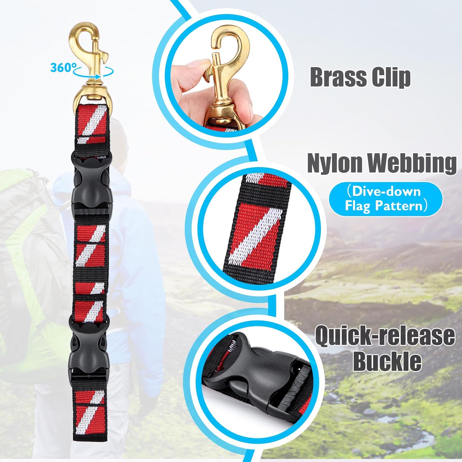 Scuba BC Fin Holder & Mask Clip - Our strap has two loops with buckles and a clip to attach the mask and fins together to your BC, keeping your hands free to carry other accessories or for balance while shore diving. 2Pack Scuba Lanyard Clips - t can easily hang on your bcd and quickly access to anything you need when underwater, such as gauges, flashlights, cameras, octo, or rods ect to help prevent dropping them during a dive.