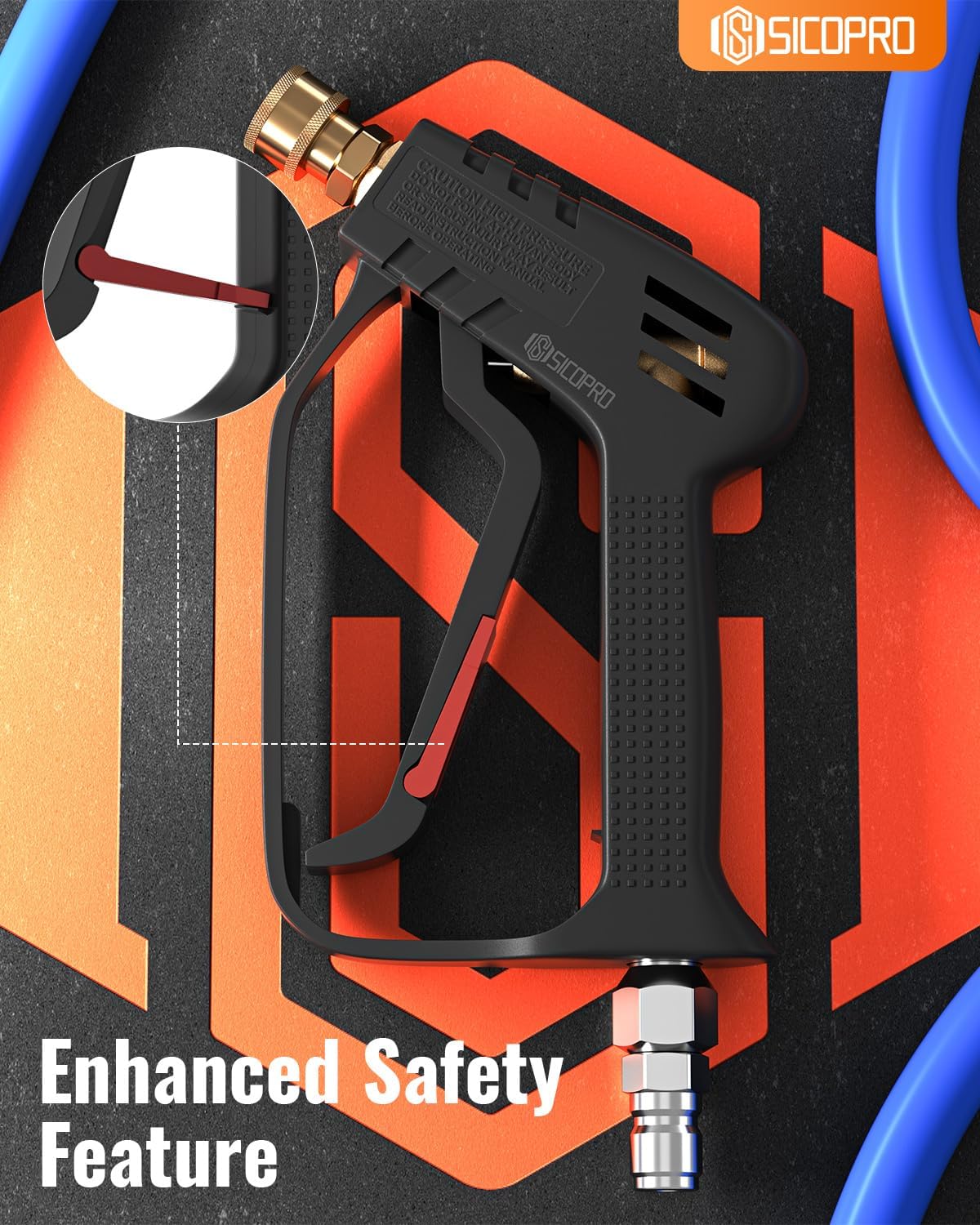 SICOPRO Short Pressure Washer Gun, Power Washer Gun for Car Wash Foam Gun, Stubby Pressure Washer Gun with 3/8" Male Plug And 1/4” Quick Connector Coupler, Anti-Tangle Design