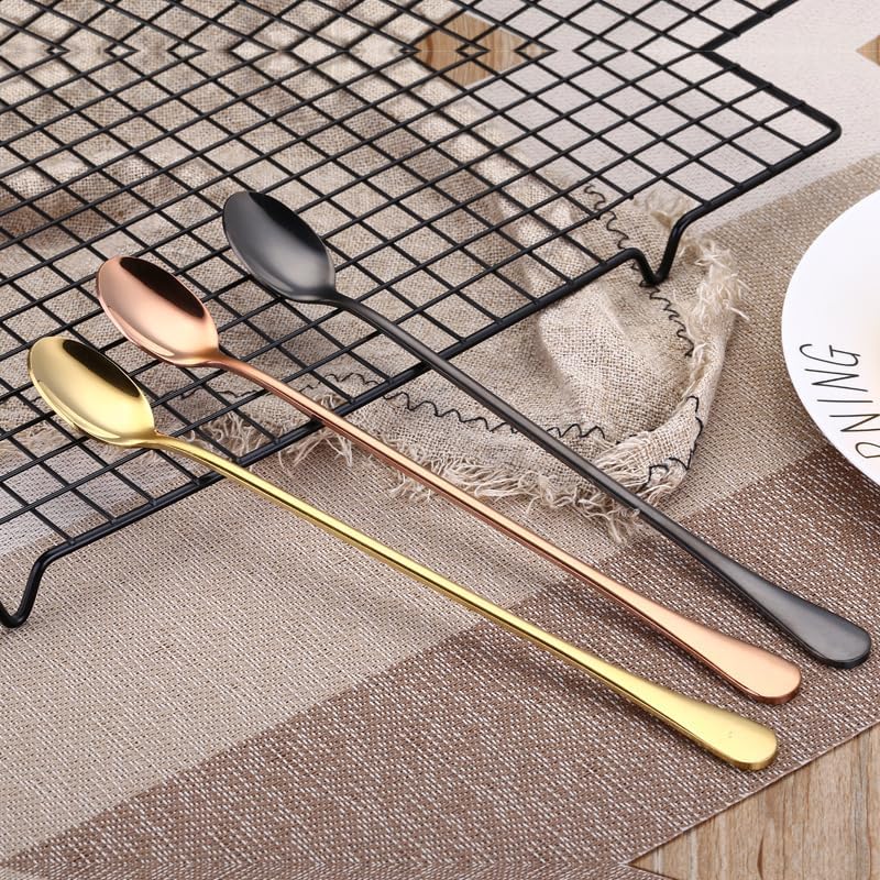 Silverware Flatware Set, 1/4/6/8/10/12 Pieces Stainless Steel Spoons Ice Spoons Long Handle Seasoning Spoons Stirring Pointed Round Spoons(Black,10Pcs)