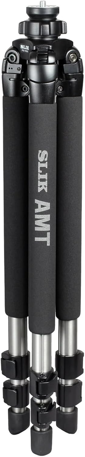 SLIK๏ฟฝs exclusive A.M.T. super titanium alloy legs make the PRO 700 DX tripod rock steady yet lighter than it looks. The A. M. T. alloy has a 40% greater strength to weight ration than standard aluminum, meaning the legs are lighter weight yet stronger than the standard metal used in most of today๏ฟฝs tripods. Capable of handling the weight of large format (4x5) field cameras or heavy, long telephoto lenses, The PRO 700 DX offer professional photographers and advanced amateurs the strength and stability they need while its size, and the use of A. M. T. alloy, make it lighter weight and more portable than THE PROFESSIONAL series.A tripod should be easy to use, so that that you spend more time concentrating on your photography than you do your equipment. The PRO 700 DX makes setting up easy with secure yet fast speed release leg locks, gearless center column, and 3 position adjustable angle leg locks for easy set up on uneven ground or steps. The PRO 700 DX center column is actually two threaded pieces that unscrew to convert the top piece to a short column. This combined with the adjustable leg angle locks allows the tripod to be lowered to just 15 inches for very low angle or macro photography in the field. MAX. OPERATING HEIGHT 71 IN MIN. OPERATING HEIGHT 10.8 IN MAX. CENTER COLUMN EXT 15 IN CENTER COLUMN TYPE INVERTABLE CENTER COLUMN, UNSCREWS FOR SHORT COLUMN/LOW ANGLE USE FOLDED LENGTH 27.6 IN WEIGHT 5.5 LBS NUMBER OF LEG SECTIONS 3 MAX. LOAD 19.8 LBS LEG LOCK TYPE LEVER LOCK LEG TIP RUBBER FOOT