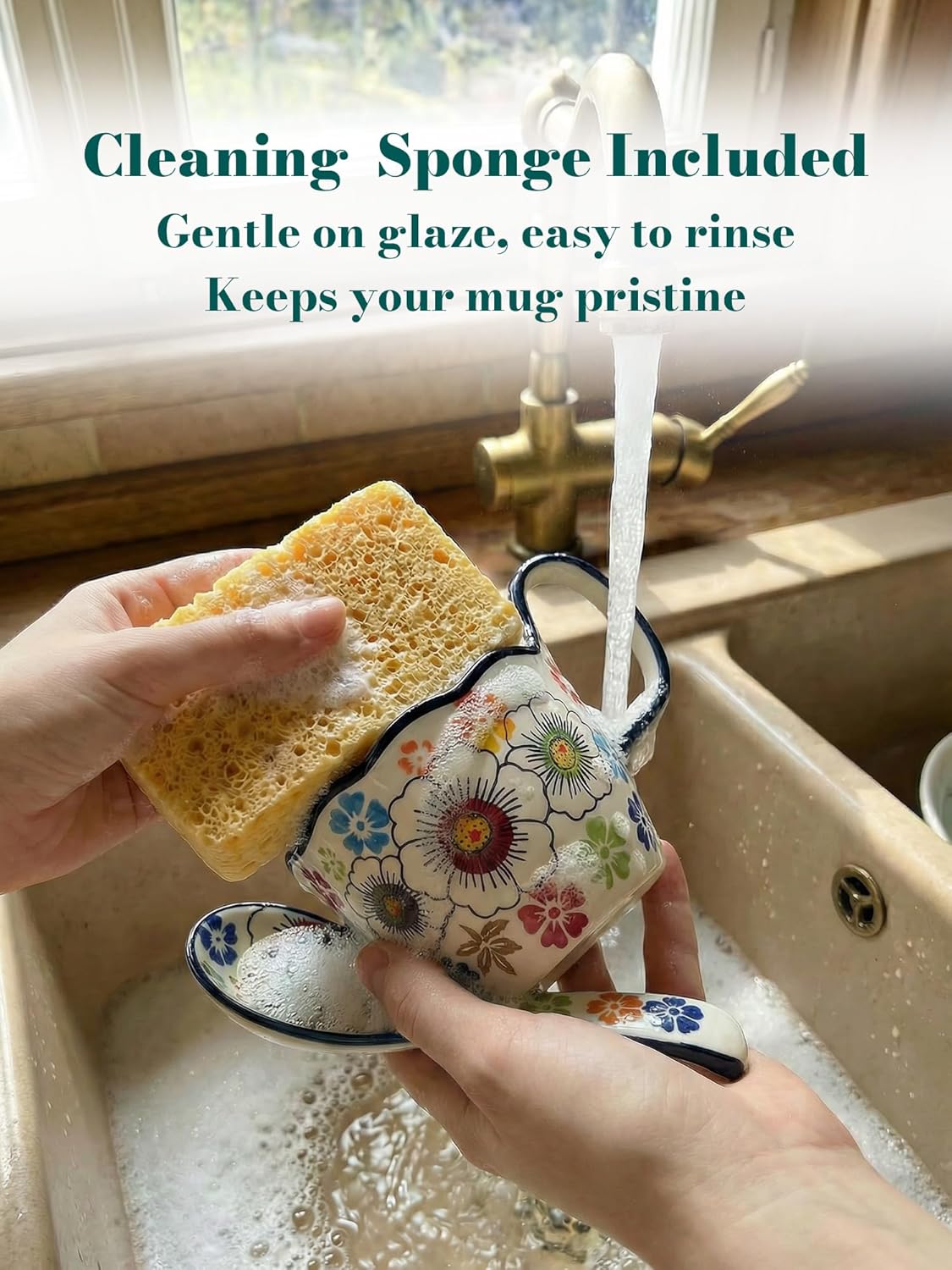 Make hot soup feel easy again. Meadow Mosaic is a soup bowl with handle designed for real daily use—when you don’t want a bowl that’s too hot to hold. The sturdy handle keeps your grip comfortable, and the matching spoon turns it into a complete, cozy set for soup, ramen, oatmeal, chili, and more. The Polish-inspired floral pattern brings a bright, uplifting look to your kitchen, while everyday-friendly features keep it practical: microwave and dishwasher safe, smooth glazed surface, and gift-ready packaging. Each set ships in a kraft outer box, an elegant gift box, and a protective insert, plus a wood-pulp cleaning sponge for gentle cleanup.